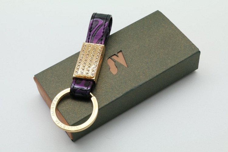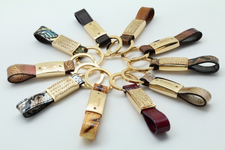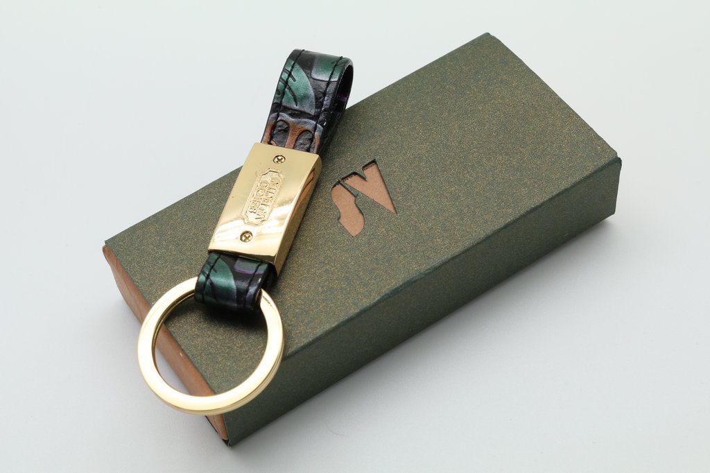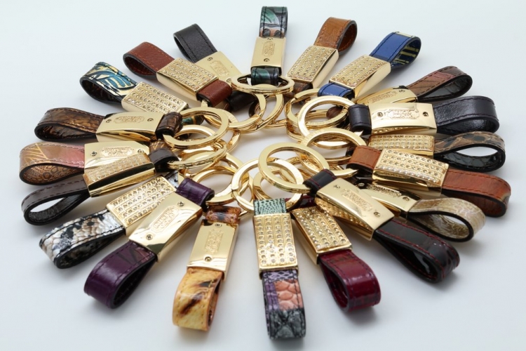 Стильный брелок для ключей. Изготовлен из высококачественной фурнитуры с использованием натуральной кожи различных видов и расцветок. Упакован в индивидуальную коробку. Свои пожелания по цвету кожи Вы можете оставить в комментарии к заказу или сообщить менеджеру.