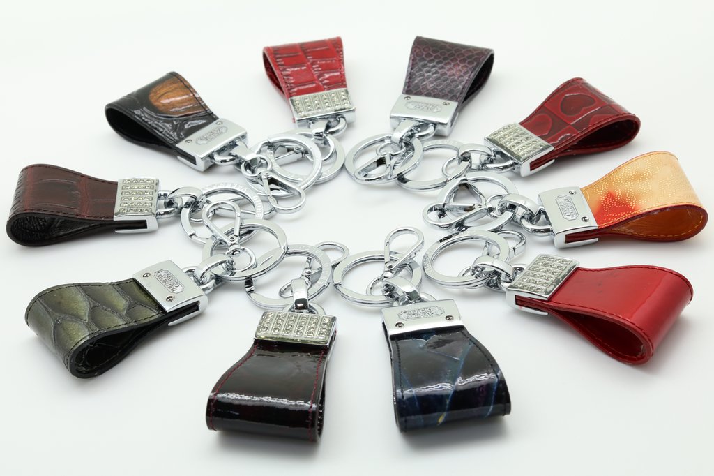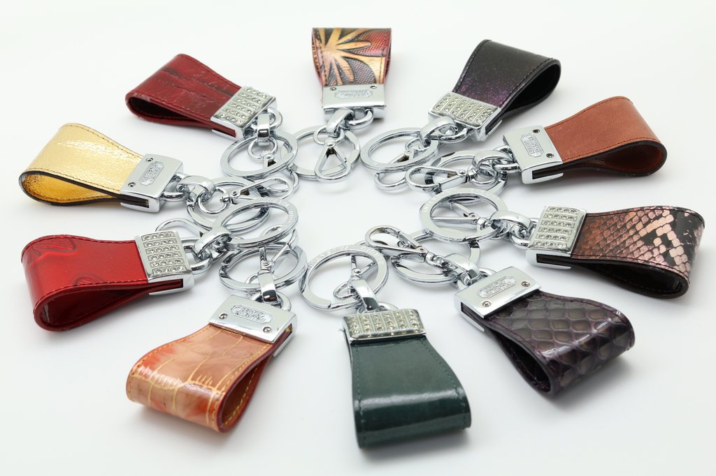 Стильный брелок для ключей. Изготовлен из высококачественной фурнитуры с использованием натуральной кожи различных видов и расцветок. Упакован в индивидуальную коробку. Свои пожелания по цвету кожи Вы можете оставить в комментарии к заказу или сообщить менеджеру.