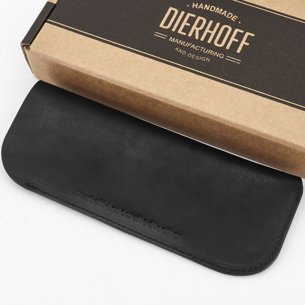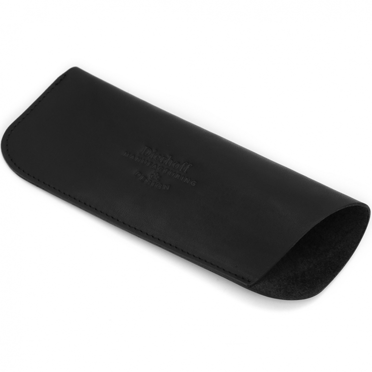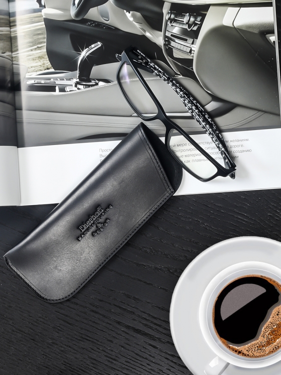 Размер 6,5 х 17 см. Чехол для очков изготовлен с использованием значительной доли ручного труда. Высококачественная кожа растительного дубления плотная, держит форму без картона или пластика, неприхотлива, надёжна. Очечник упакован в фирменную коробку.