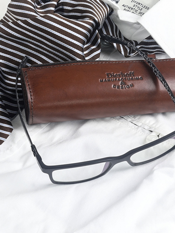 Размер 18 х 5 х 4 см.. Чехол для очков изготовлен с использованием значительной доли ручного труда из высококачественной натуральной кожиа.