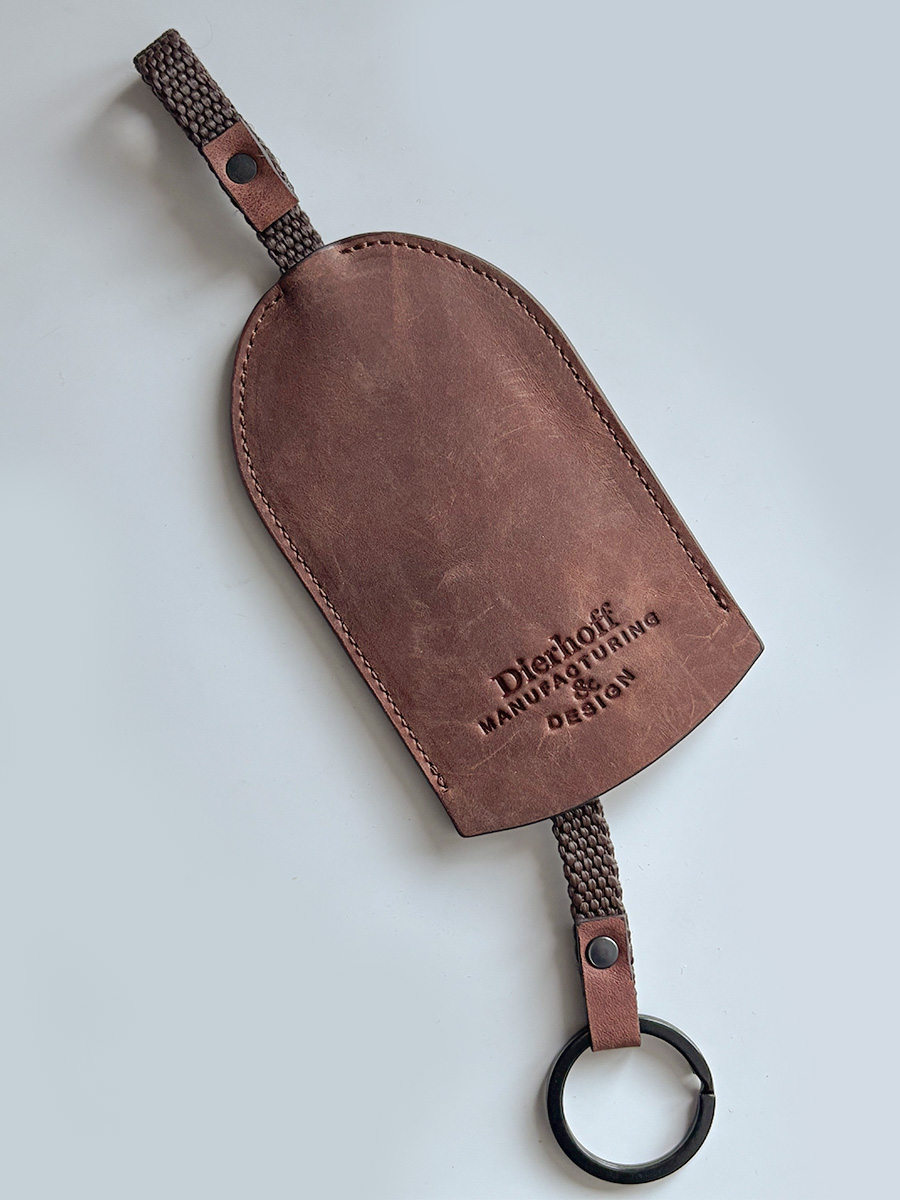 Размер 7 х 12 см. Длина шнурка 20 см., диаметр кольца 3 см. Оригинальная ключница функциональна и долговечна, изготовлена с использованием значительной доли ручного труда из высококачественной, плотной кожи "Крейзи Хорс", которая держит форму без картона или пластика, неприхотлива, надёжна. Потертости, неизбежно возникающие при носке подобных изделий, только улучшают внешний вид, придают ему брутальную винтажность. Со временем в местах наибольшего трения цвет кожи может меняться на более насыщенный, даря изделию неповторимый шарм и ощущение благородной старины. Уникальность кожи Crazy Horse в том, что царапины легко удалить, для этого достаточно потереть дефект мягкой тряпочкой или пальцами и он исчезнет. Ключница упакована в подарочную коробку Dierhoff.