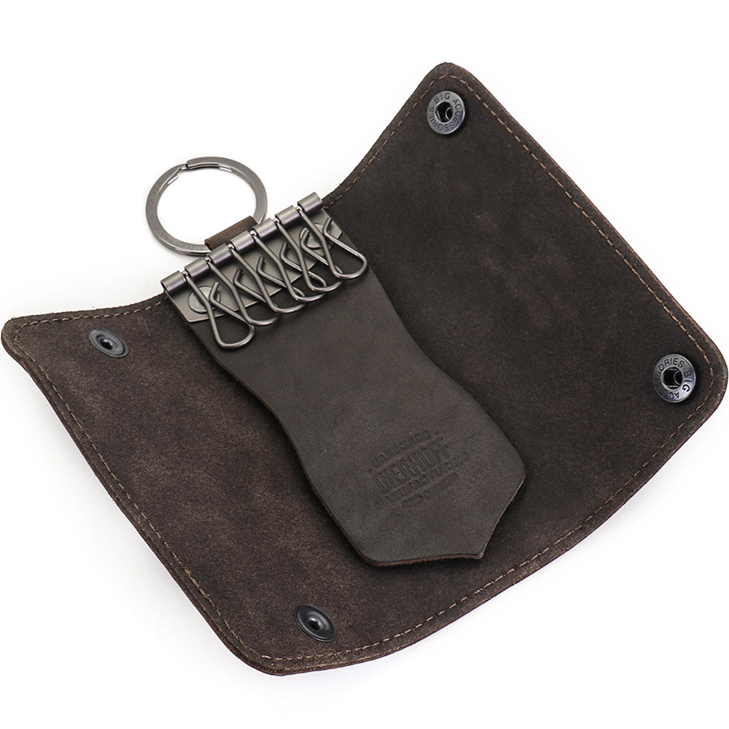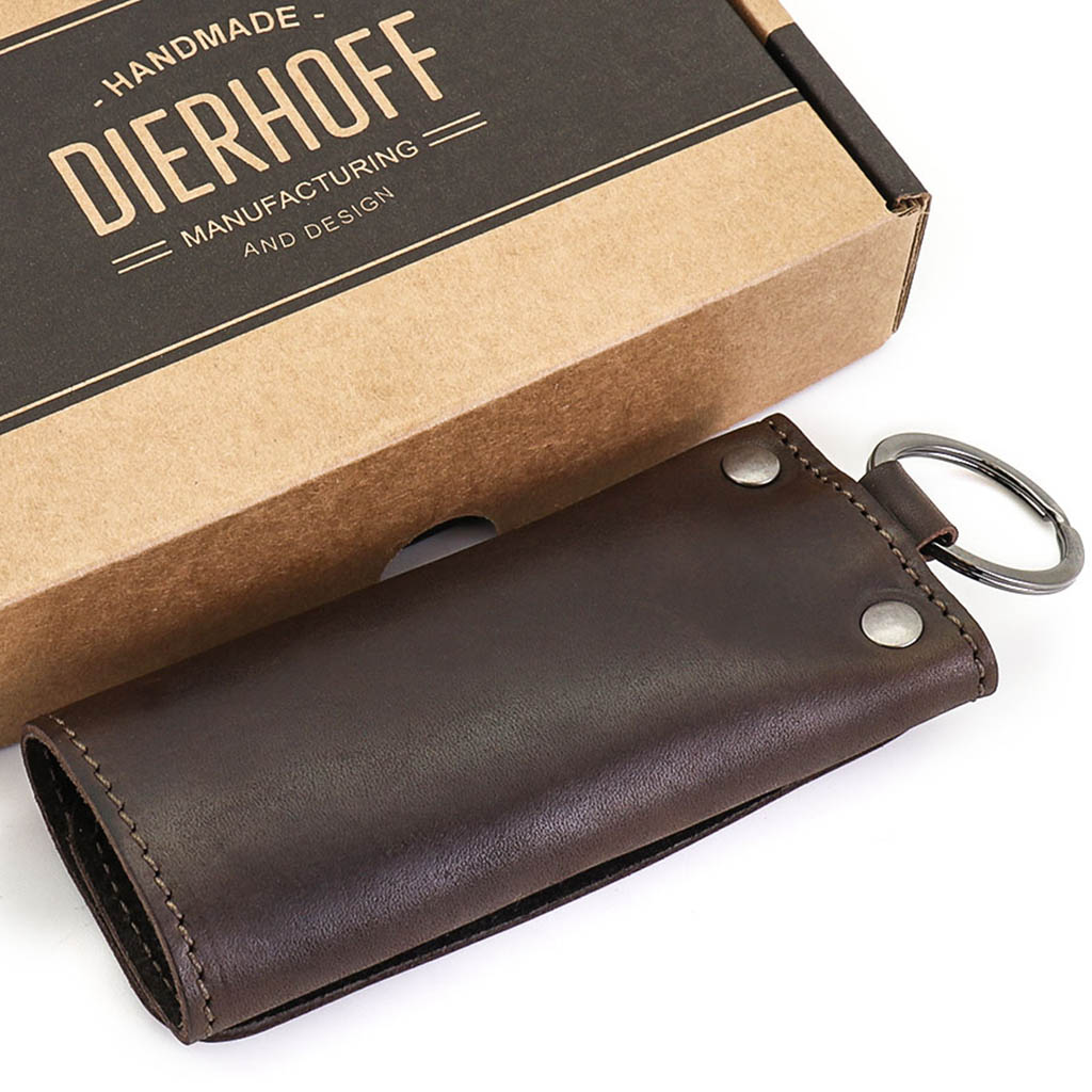 Размер 5 х 12 см. (Размер с учетом кольца 5 х 15,5 см.) Закрывается на две кнопки. Внутри шесть держателей для ключей. Ключница функциональна и долговечна, изготовлена с использованием значительной доли ручного труда из натуральной буйволиной кожи, которая держит форму без картона или пластика, неприхотлива, надёжна. Упакована в фирменную коробку.