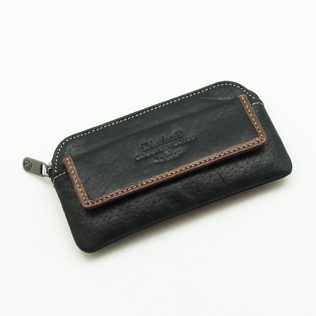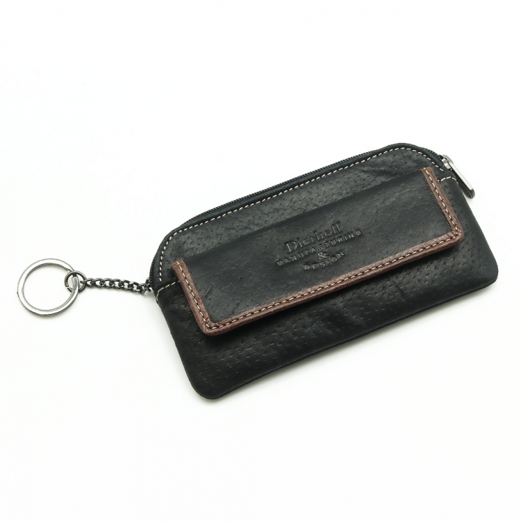 Размер 13,5 х 7 см. Внутри кольцо для ключей на цепочке. На лицевой стороне изделия устроен карман для мелких предметов.