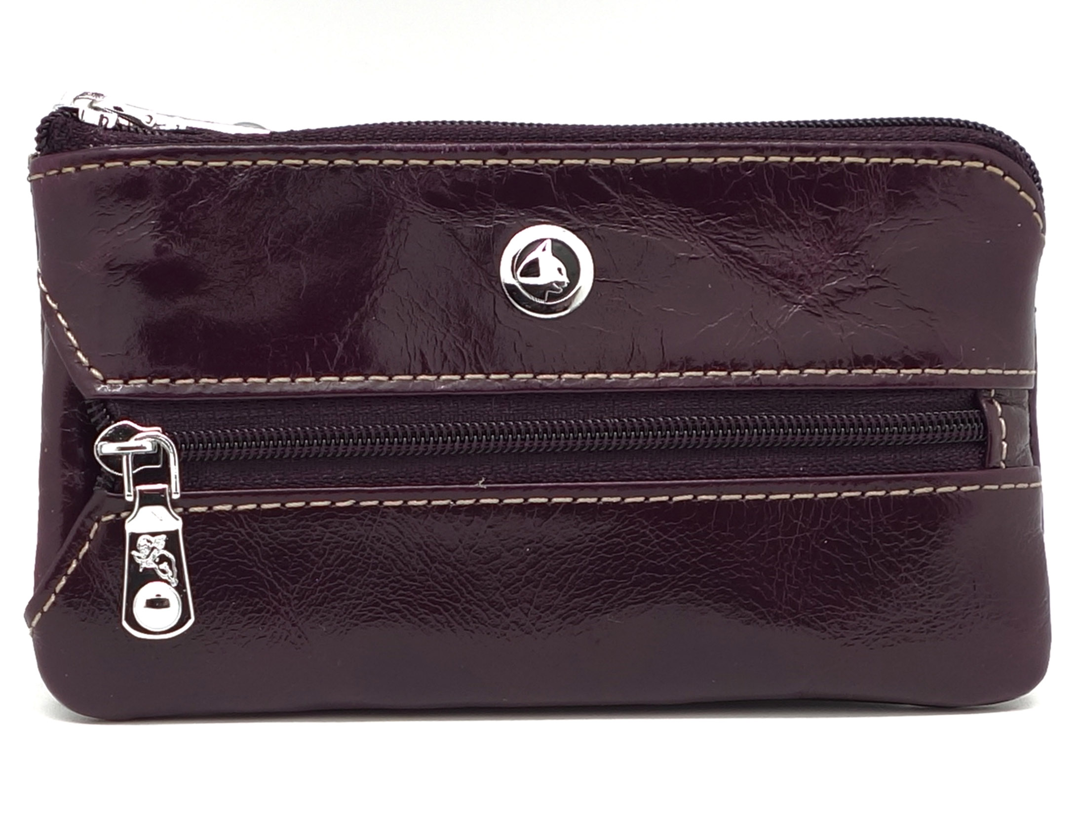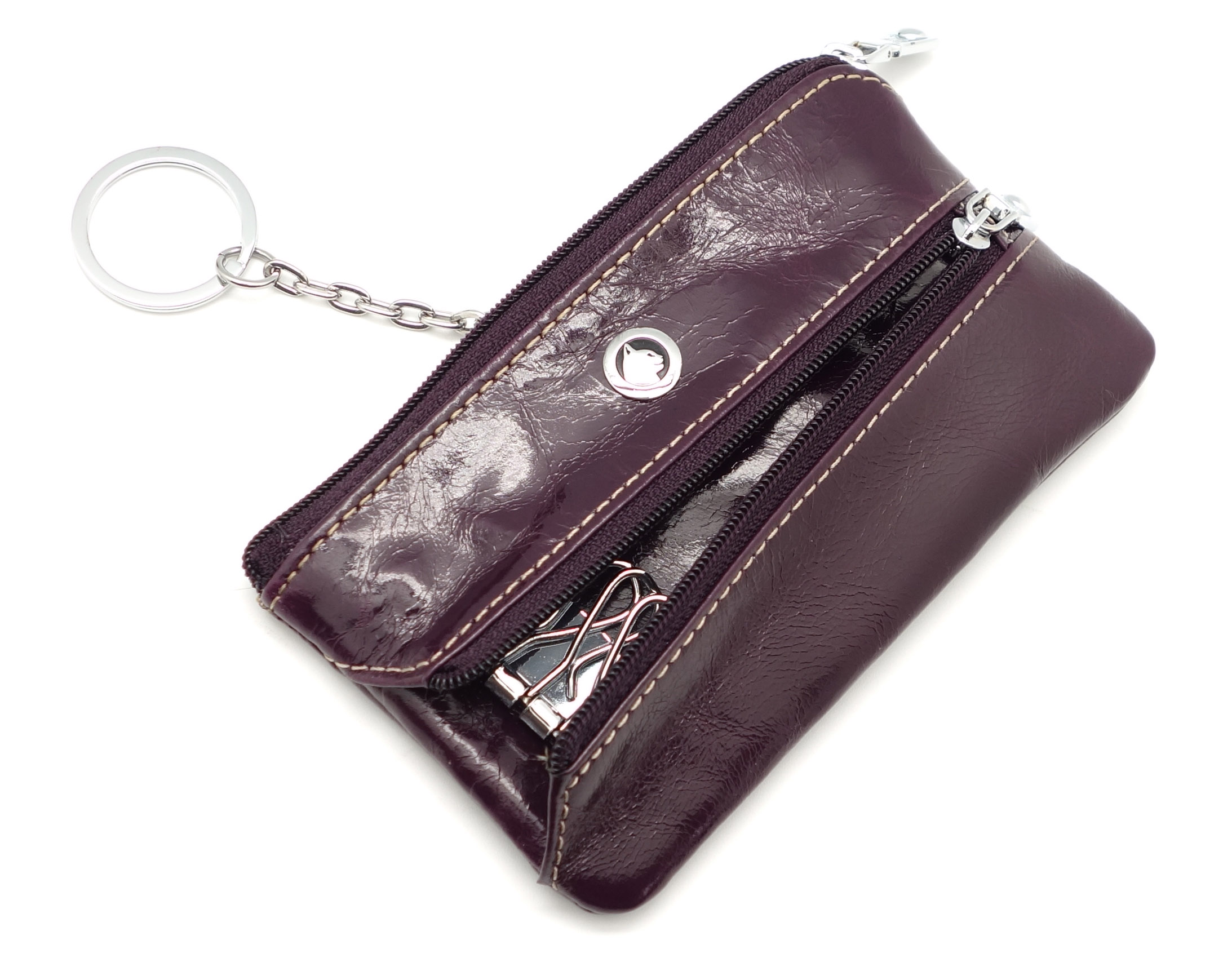Размер 13,5 х 7,5 см. На лицевой стороне расположен карман на молнии с шестью крючками для ключей, на оборотной- кармашек на молнии для мелких предметов. Центральное отделение также закрывается на молнию, внутри металлическая цепочка с кольцом.