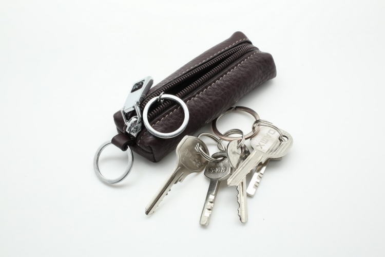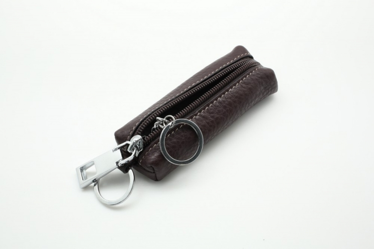 Размер 10.5 х 4 х 1,5 см. Закрывается на молнию. Внутри металлическое кольцо на цепочке. Снаружи металлическое кольцо.