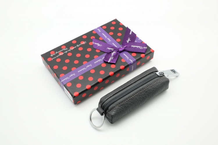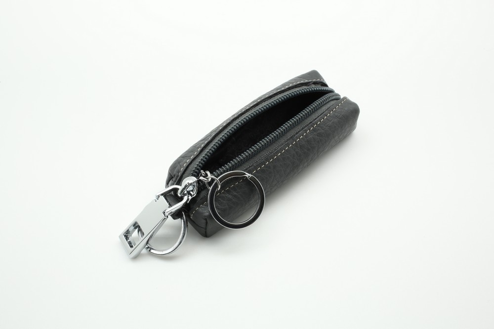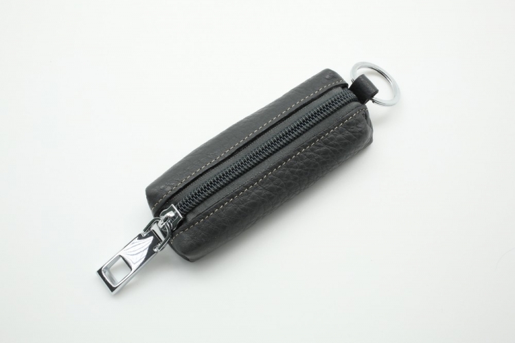 Размер 10.5 х 4 х 1,5 см. Закрывается на молнию. Внутри металлическое кольцо на цепочке. Снаружи металлическое кольцо.