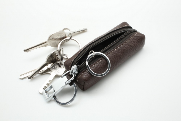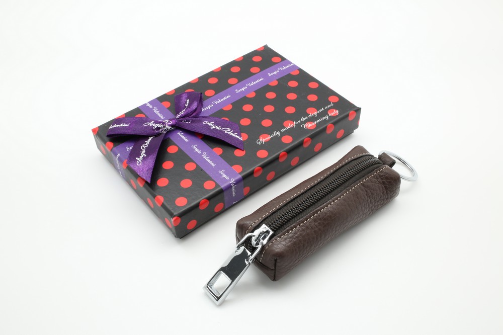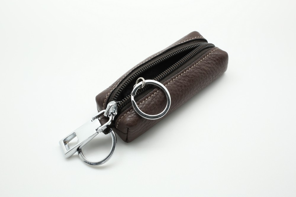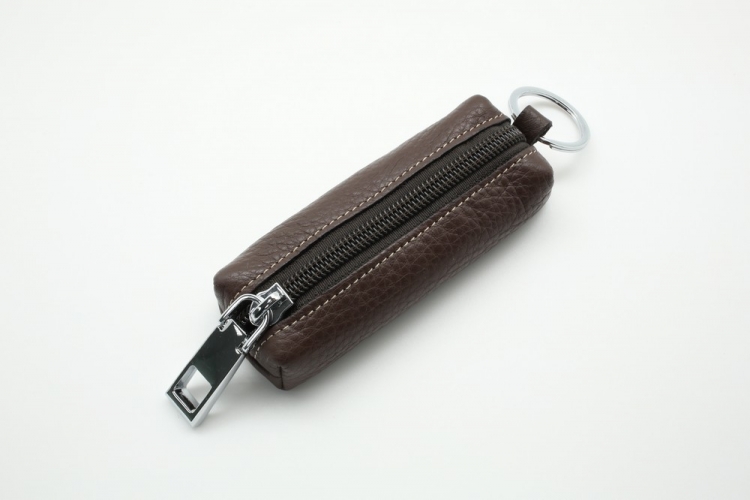Размер 10.5 х 4 х 1,5 см. Закрывается на молнию. Внутри металлическое кольцо на цепочке. Снаружи металлическое кольцо.