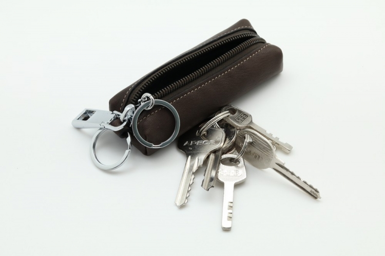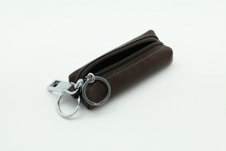 Размер 10.5 х 4 х 1,5 см. Закрывается на молнию. Внутри металлическое кольцо на цепочке. Снаружи металлическое кольцо.