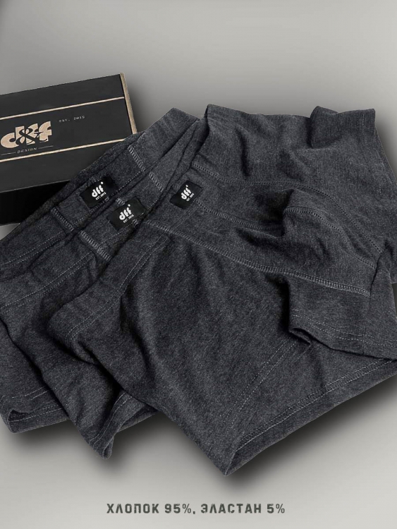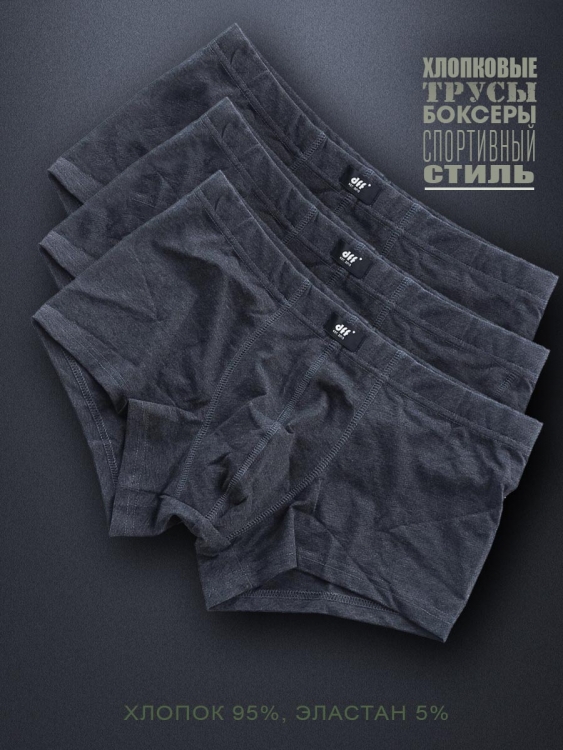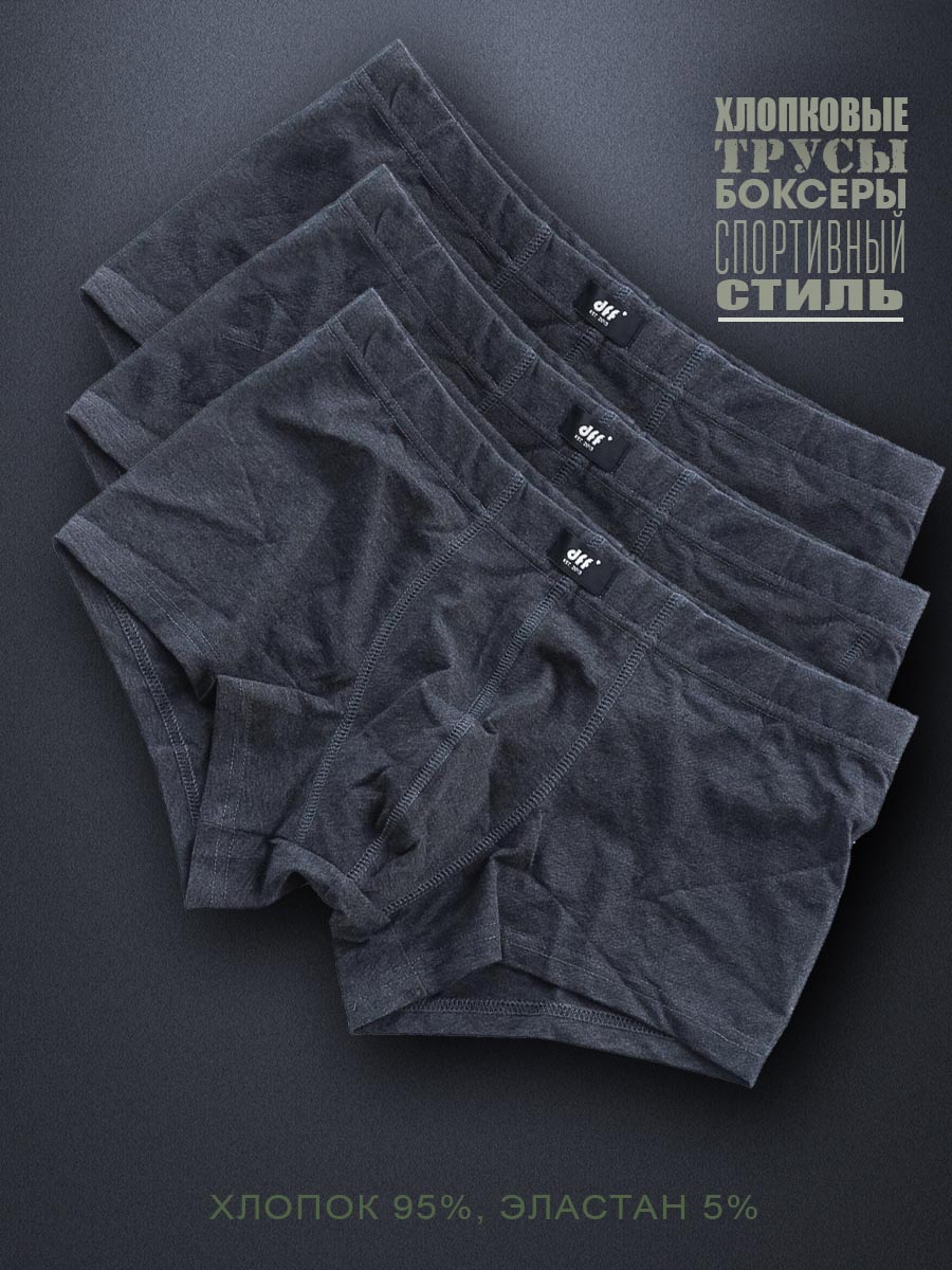 Комплект мужских трусов 3 шт. хлопок 95% эластан 5%, DFF, цвет: Антрацит