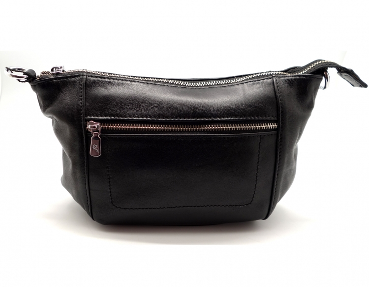 Размер 25 х 14 х 7 см. Закрывается на молнию. Внутри одно отделение и карман на молнии. Снаружи, на обратной стороне, карман на молнии. К косметичке крепится кожаная ручка на карабине.