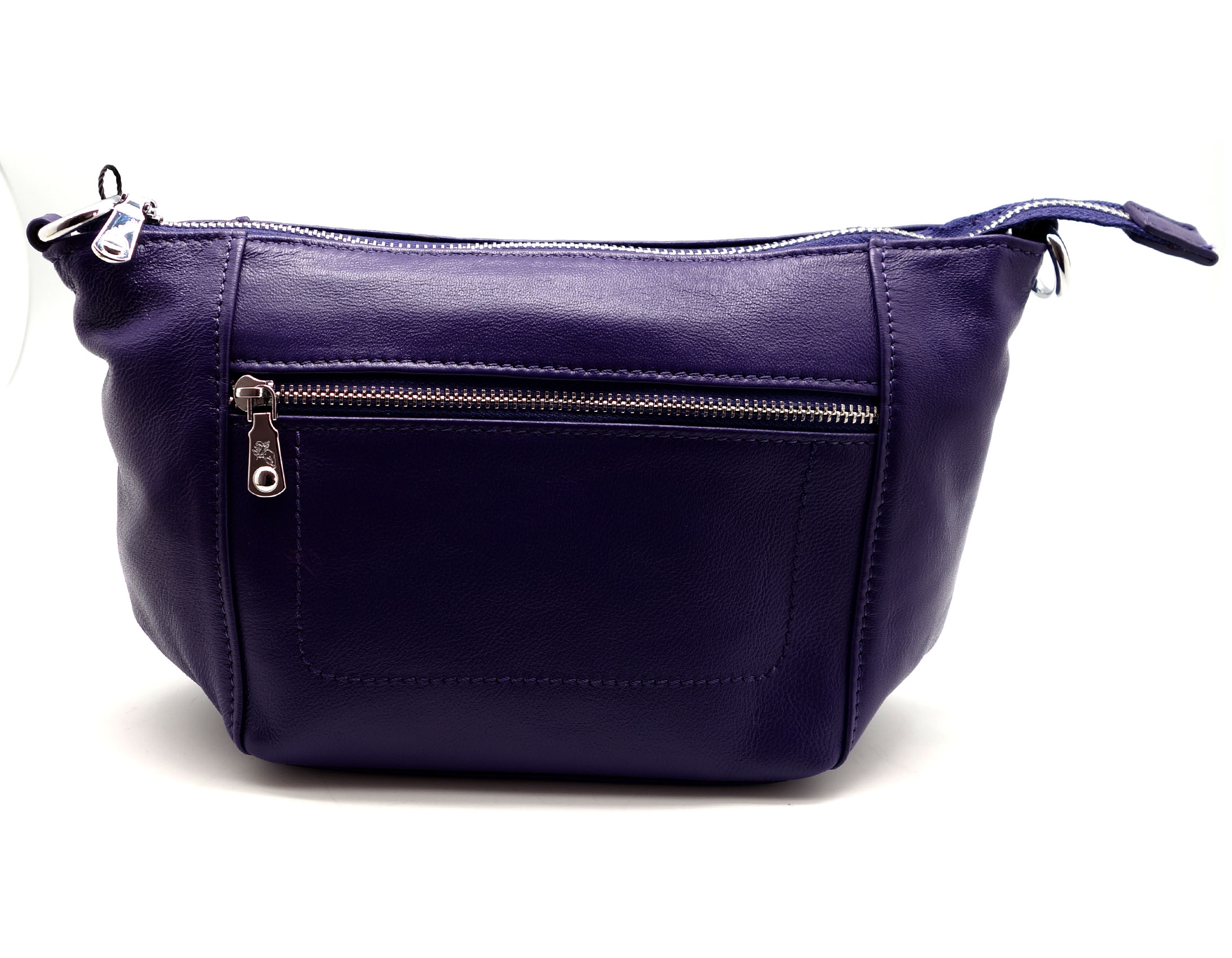 Размер 25 х 14 х 7 см. Закрывается на молнию. Внутри одно отделение и карман на молнии. Снаружи, на обратной стороне, карман на молнии. К косметичке крепится кожаная ручка на карабине.