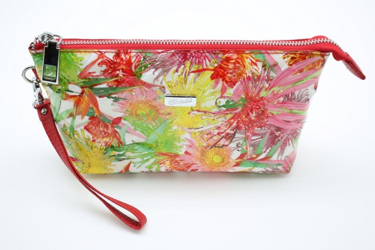 Размер 24 х 13 х 6 см. Закрывается на молнию. Имеет одно отделение и два внутренних боковых кармана- открытый и на молнии. Косметичка укомплектована съёмным ремешком.