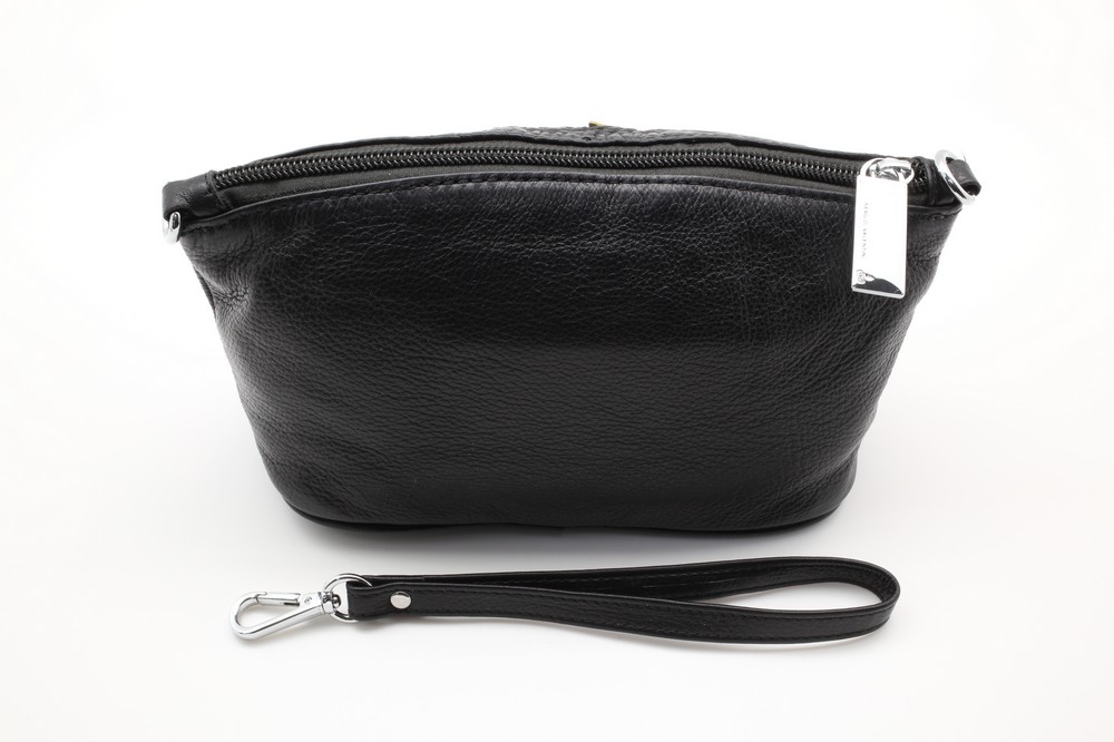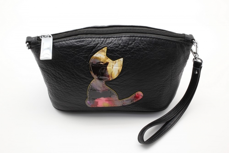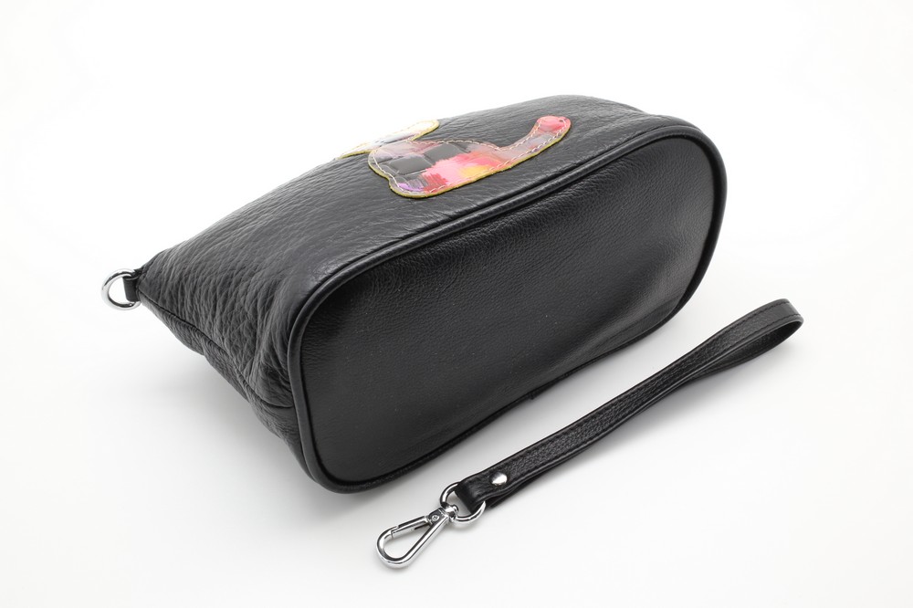 Размер 21 х 11 х 9 см. Закрывается на молнию. Внутри одно отделение и карман на молнии. Косметичка укомплектована съёмной ручкой с карабином. Изготовлена из мягкой кожи, на лицевой стороне оригинальная аппликация. Расцветка аппликации может отличаться от представленной на фотографии.