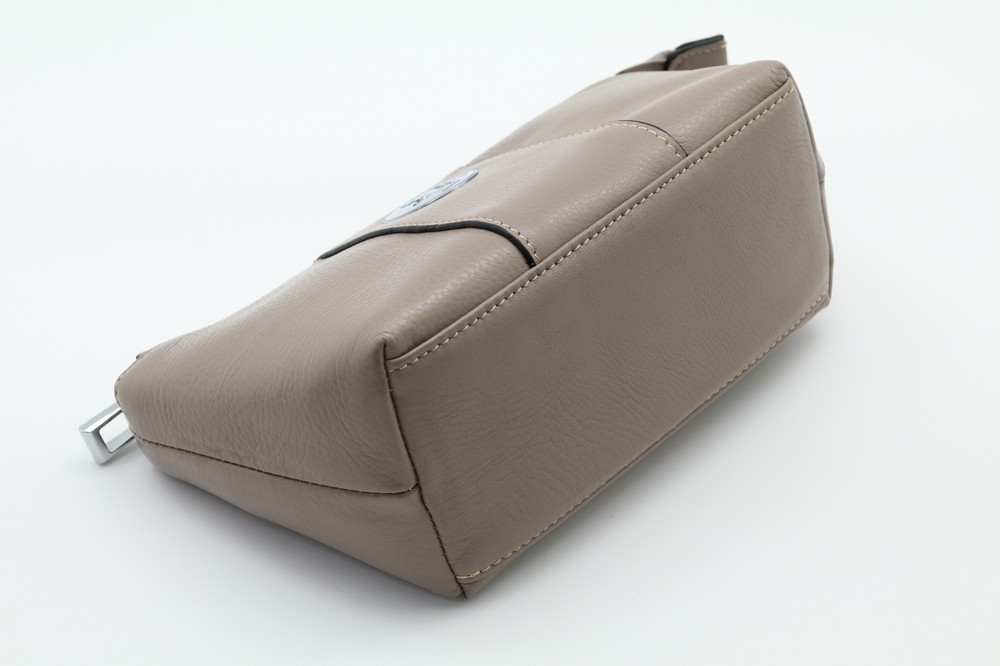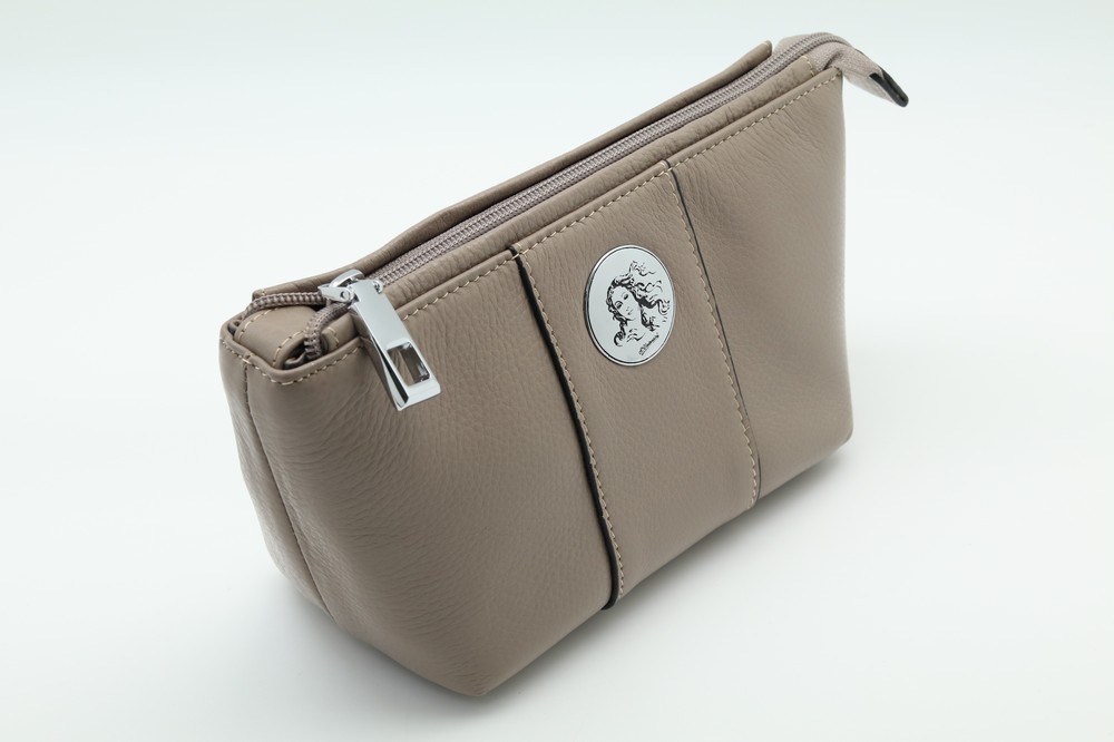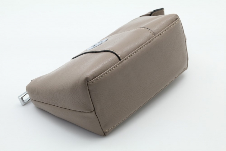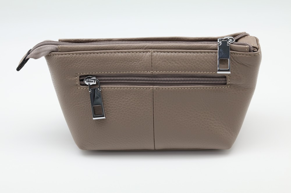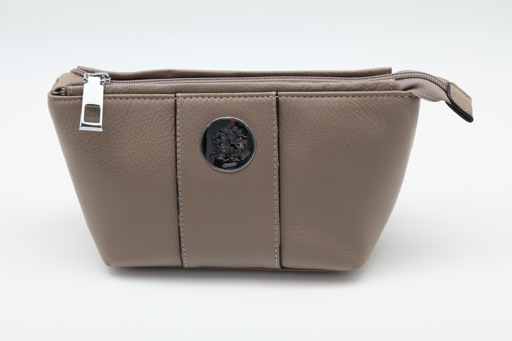 Размер 23 х 12 х 8 см. Закрывается на молнию. Внутри одно отделение и шесть боковых кармашков на подкладке. Снаружи, на тыльной стороне, карман на молнии.
