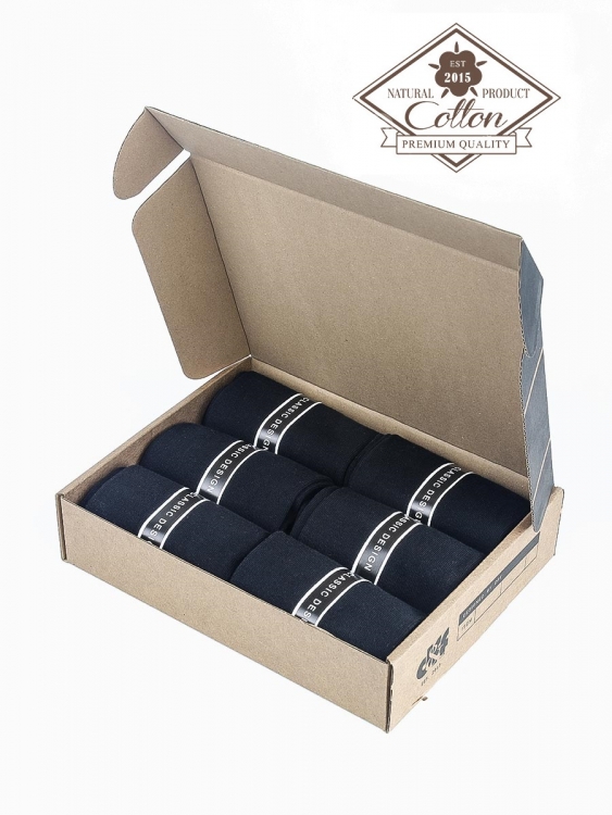 Мужские всесезонные носки, комплект 6 пар в фирменной коробке. Основа материала – высококачественный хлопок. Содержат полипропилен- гидрофобные волокна, которые лучше других отводят влагу с поверхности кожи. Хорошо держат форму и обладают повышенной воздухопроницаемостью. Не линяют после многочисленных стирок. Усиленные пятка и мысок для повышенной износостойкости. Классический дизайн, имеют среднюю высоту паголенка. Бесшовная технология (кеттельный, плоский шов). Произведены по европейским стандартам на современных итальянских вязальных автоматах «BUSI GIOVANNI».