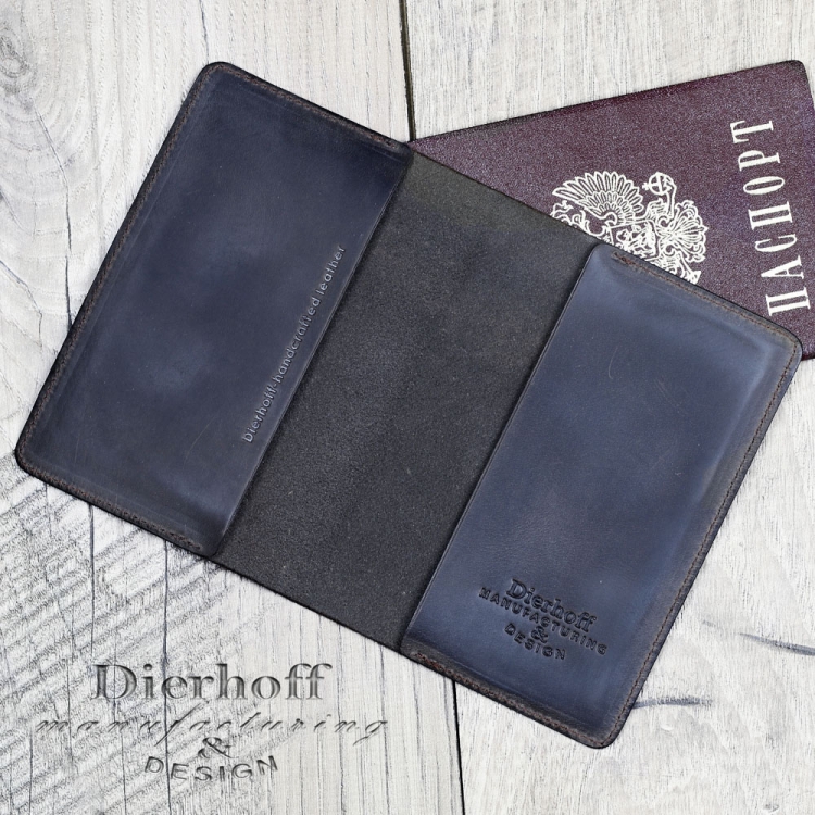 Размер 9,5 х 13,5 см. На внутренней стороне кожаные захваты. Обложка для паспорта функциональна и долговечна, изготовлена с использованием значительной доли ручного труда из высококачественной, плотной кожи "Крейзи Хорс", которая держит форму без картона или пластика, неприхотлива, надёжна. Пошарпанности и потертости, неизбежно возникающие при носке подобных изделий, только улучшают внешний вид, придают ему брутальную винтажность. Со временем в местах наибольшего трения цвет кожи может меняться на более насыщенный, даря изделию неповторимый шарм и ощущение благородной старины. Уникальность кожи Crazy Horse в том, что царапины легко удалить, для этого достаточно потереть дефект мягкой тряпочкой или пальцами и он исчезнет. Обложка упакована в подарочную коробку Dierhoff.