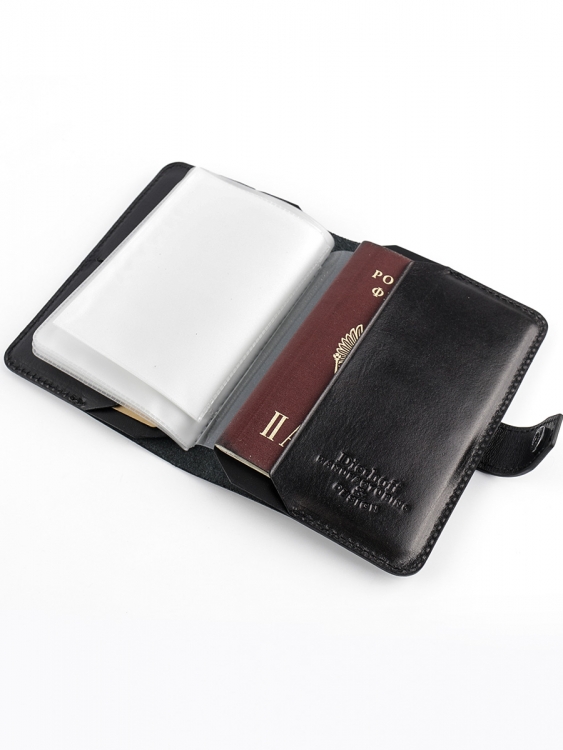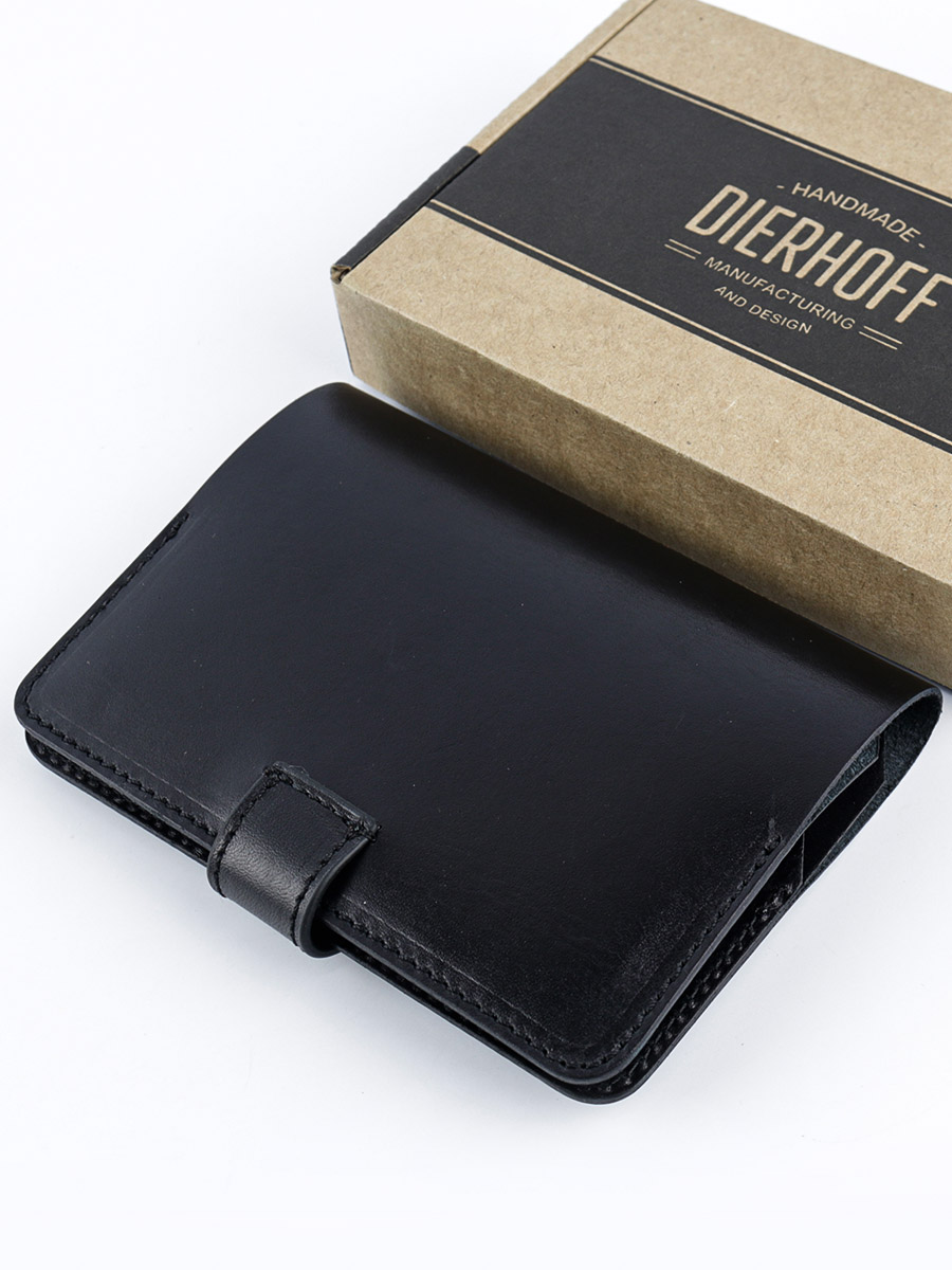 Размер 9,5 х 13,5 см. Обложка для паспорта и авто документов. Закрывается на хлястик с кнопкой. Внутри: слева - кожаный захват и два кармашка для карточек, справа- кожаный захват и карман, вкладыш с прозрачными файлами для авто документов. Обложка функциональна и долговечна, изготовлена с использованием значительной доли ручного труда. Высококачественная плотная кожа держит форму без картона или пластика, неприхотлива, надёжна. Обложка упакована в подарочную коробку Dierhoff.