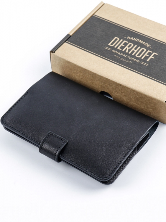 Размер 9,5 х 13,5 см. Обложка для паспорта и авто документов. Закрывается на хлястик с кнопкой. Внутри: слева - кожаный захват и два кармашка для карточек, справа- кожаный захват и карман, вкладыш с прозрачными файлами для авто документов. Обложка функциональна и долговечна, изготовлена с использованием значительной доли ручного труда из высококачественной мягкой натуральной кожи. Обложка упакована в подарочную коробку Dierhoff.