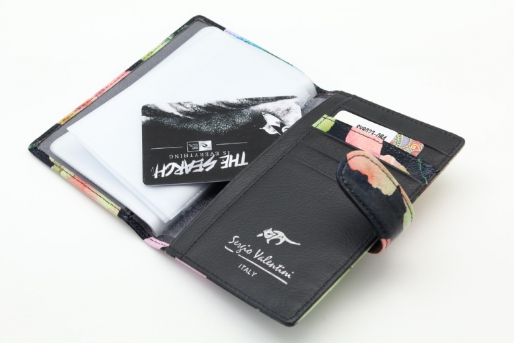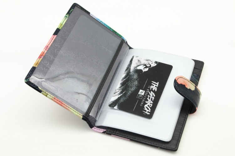 Обложка для автодокументов. Размер 10 х 13,5 см. Закрывается на хлястик с кнопкой. Внутри: слева - прозрачный захват и текстильная подкладка, справа- кожаный захват, продольный карман и четыре кармашка для пластиковых карт. Изделие укомплектовано вкладышем с прозрачными файлами для автодокументов.