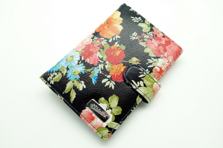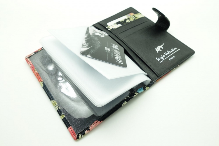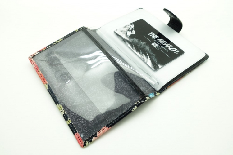 Обложка для автодокументов. Размер 10 х 13,5 см. Закрывается на хлястик с кнопкой. Внутри: слева - прозрачный захват и текстильная подкладка, справа- кожаный захват, продольный карман и четыре кармашка для пластиковых карт. Изделие укомплектовано вкладышем с прозрачными файлами для автодокументов.