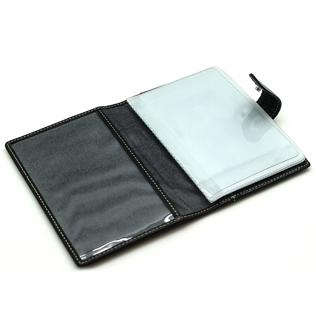Изготовлено из натуральной кожи тёмно- коричневого цвета. Обложка для автодокументов. Размер 10 х 13,5 см. Закрывается на хлястик с кнопкой. Внутри: слева - прозрачный захват и текстильная подкладка, справа- кожаный захват, продольный карман и четыре кармашка для пластиковых карт. Изделие укомплектовано вкладышем с прозрачными файлами для автодокументов.