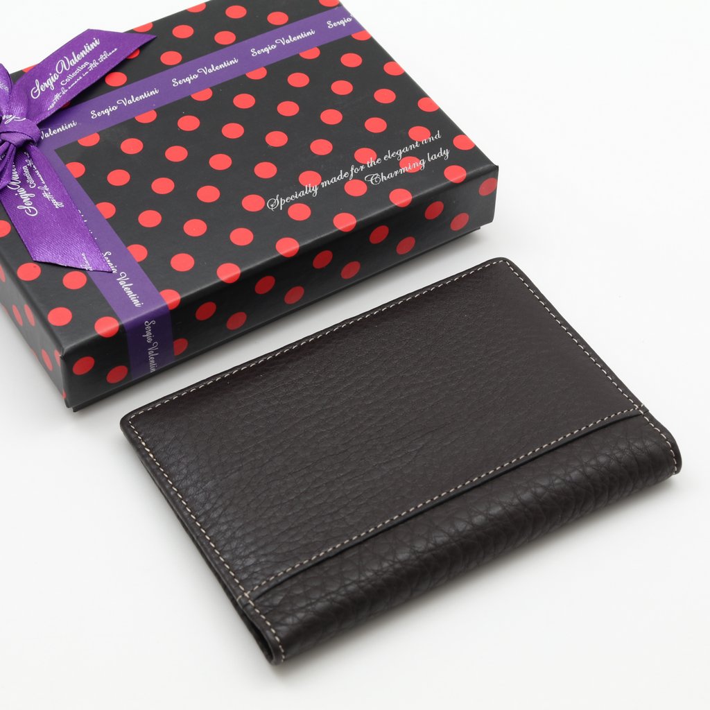 Изготовлено из натуральной кожи тёмно- коричневого цвета. Размер 9,5 х 13,5 см. Внутри- прозрачные захваты и кожаный кармашек на правой створке.