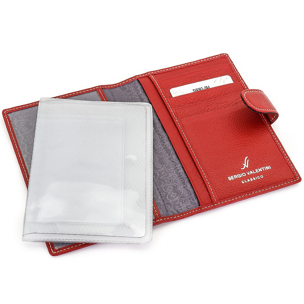 Обложка для автодокументов. Размер 10 х 13,5 см. Закрывается на хлястик с кнопкой. Внутри: слева - прозрачный захват и текстильная подкладка, справа- кожаный захват, продольный карман и четыре кармашка для пластиковых карт. Изделие укомплектовано вкладышем с прозрачными файлами для автодокументов.