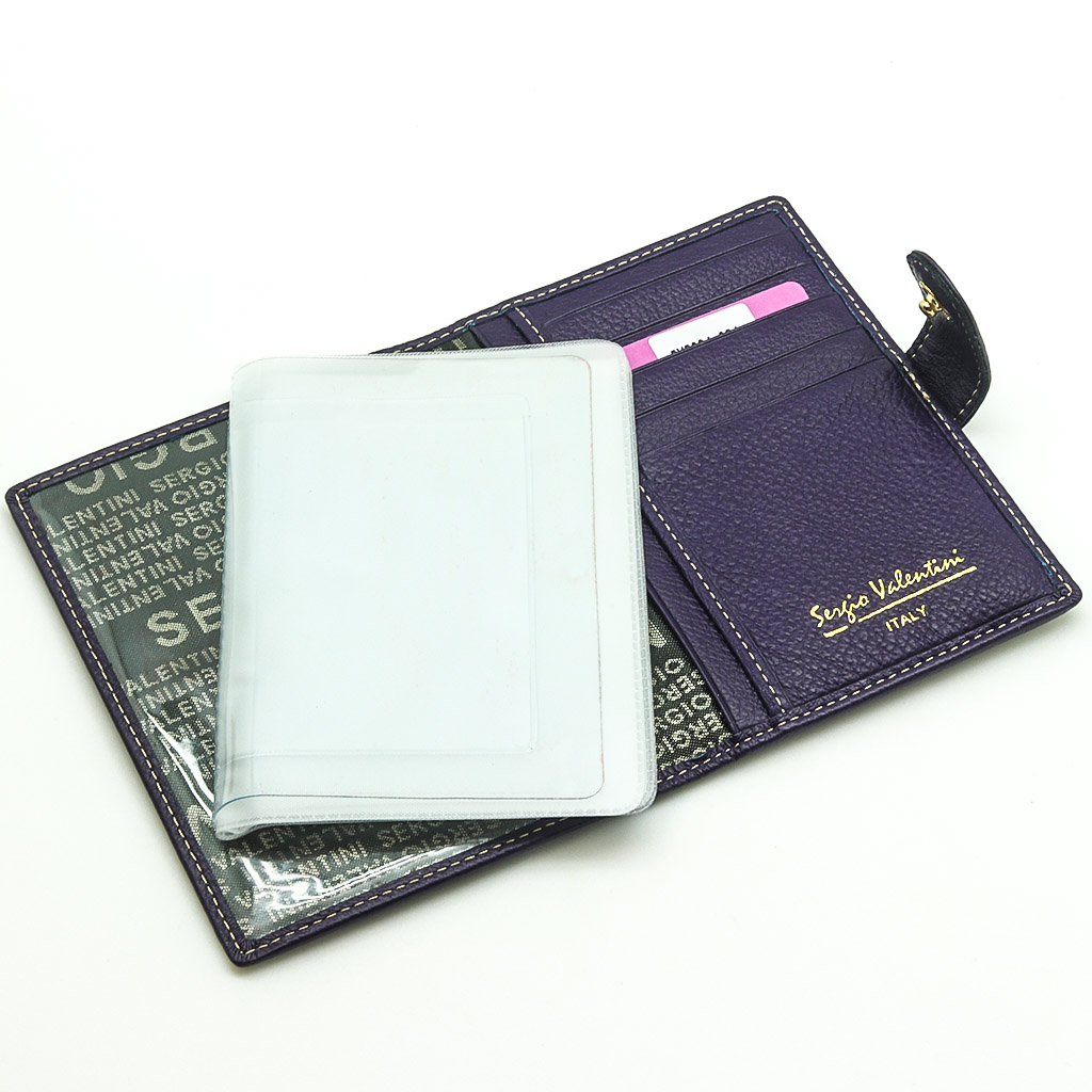 Обложка для автодокументов. Размер 10 х 13,5 см. Закрывается на хлястик с кнопкой. Внутри: слева - прозрачный захват и текстильная подкладка, справа- кожаный захват, продольный карман и четыре кармашка для пластиковых карт. Изделие укомплектовано вкладышем с прозрачными файлами для автодокументов.