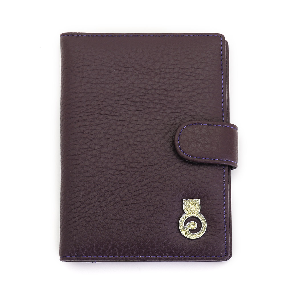 Обложка для автодокументов. Размер 10 х 13,5 см. Закрывается на хлястик с кнопкой. Внутри: слева - прозрачный захват и текстильная подкладка, справа- кожаный захват, продольный карман и четыре кармашка для пластиковых карт. Изделие укомплектовано вкладышем с прозрачными файлами для автодокументов.