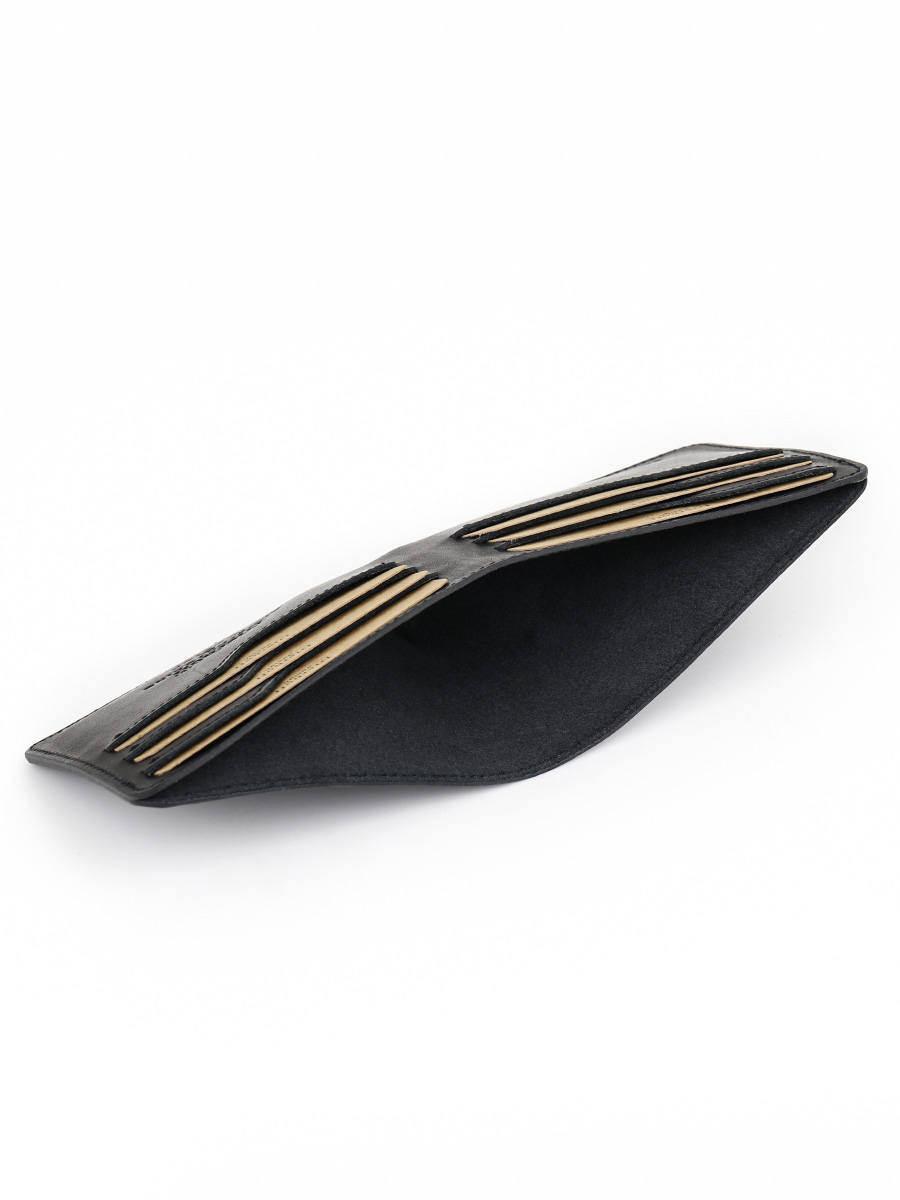 Размер 10,5 х 9 см. Внутри одно отделение для купюр и шесть кармашков для пластиковых карт. Изготовлено с использованием значительной доли ручного труда. Высококачественная кожа плотная, держит форму без картона или пластика, неприхотлива, надёжна. Упаковано в фирменную коробку.