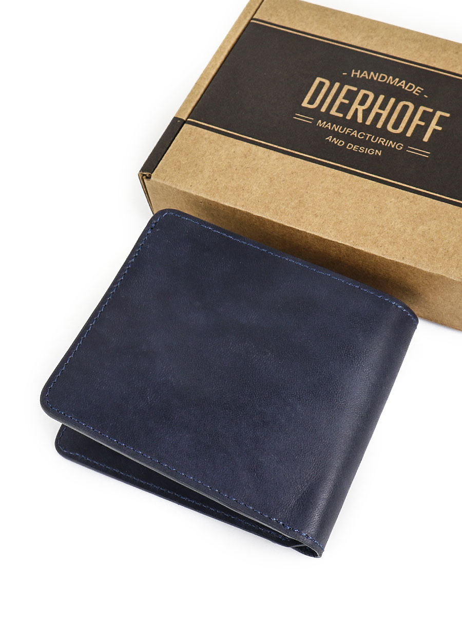 Размер 10,5 х 9 см. Внутри одно отделение для купюр и шесть кармашков для пластиковых карт. Изготовлено с использованием значительной доли ручного труда. Высококачественная кожа плотная, держит форму без картона или пластика, неприхотлива, надёжна. Упаковано в фирменную коробку.