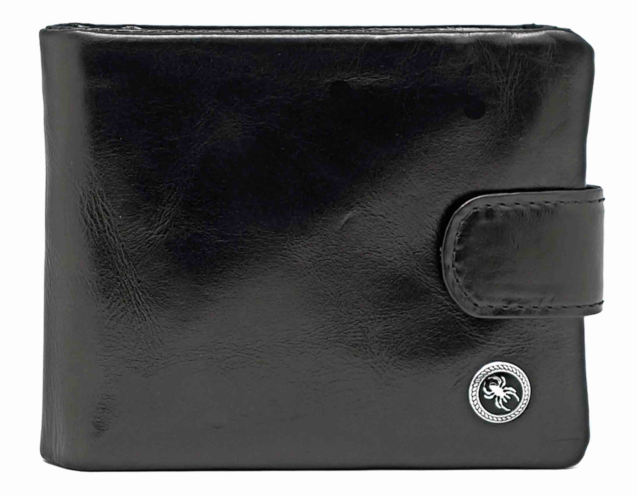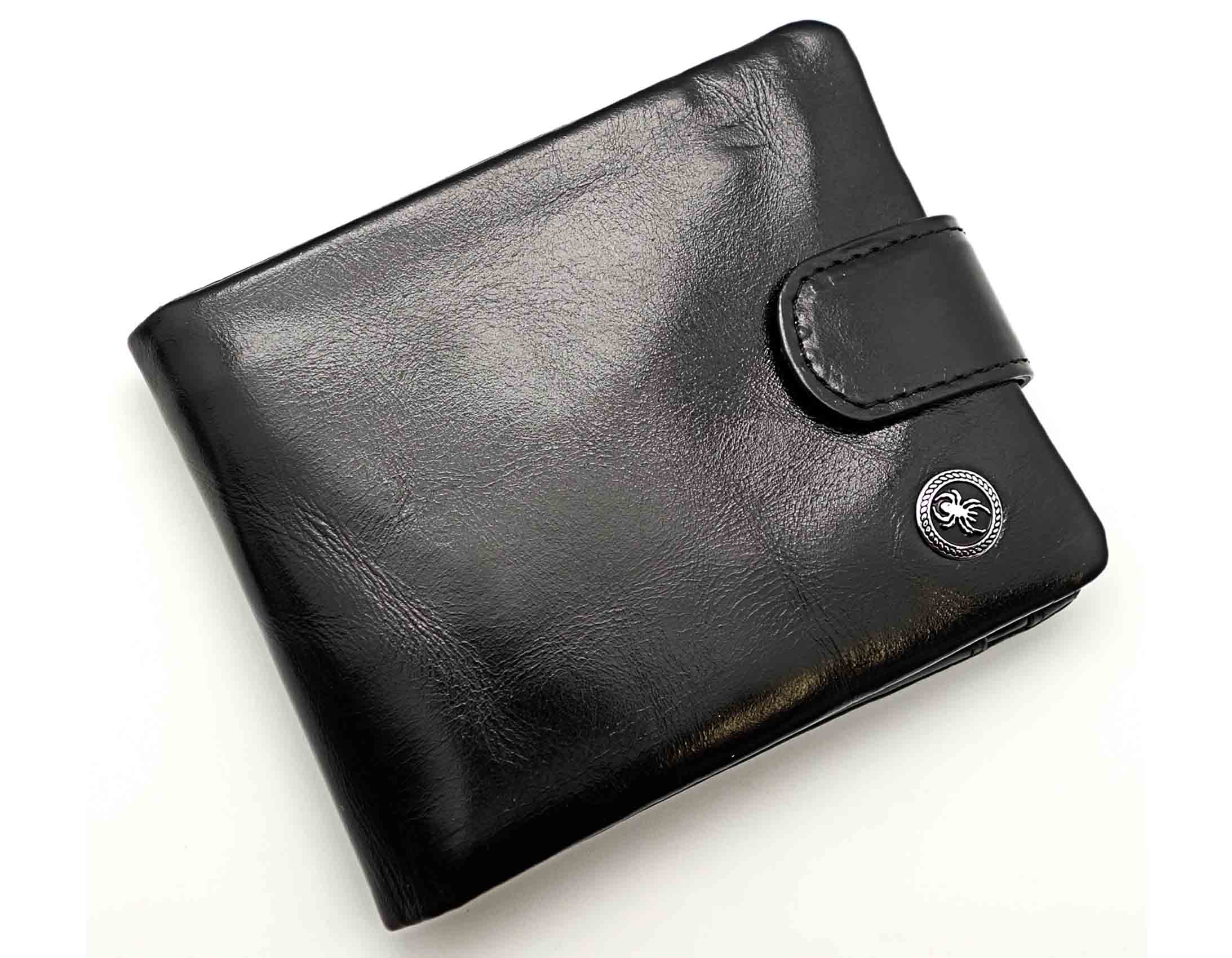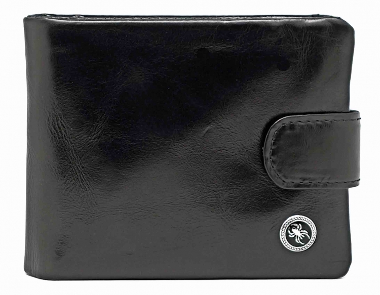 Размер 11,5 х 9,5 см. Закрывается на хлястик с кнопкой. Внутри: два отделения для купюр- открытое и на молнии, два боковых кармана, семь кармашков для пластиковых карт, отделение для монет, закрывающееся клапаном на кнопке.