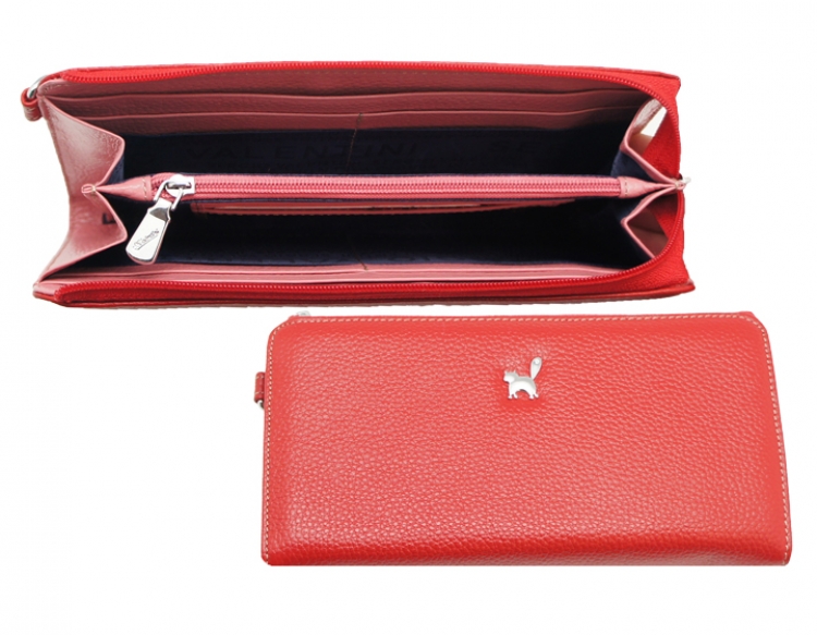 Размер 20 х 10 см.. Закрывается на молнию. Внутри - два отделения и два кармана для купюр, отделение для монет на молнии, 14 кармашков для пластиковых карт. Снаружи: на оборотной стороне карман на молнии, в левой части металлическое полукольцо для крепления кожаного ремешка с карабином.