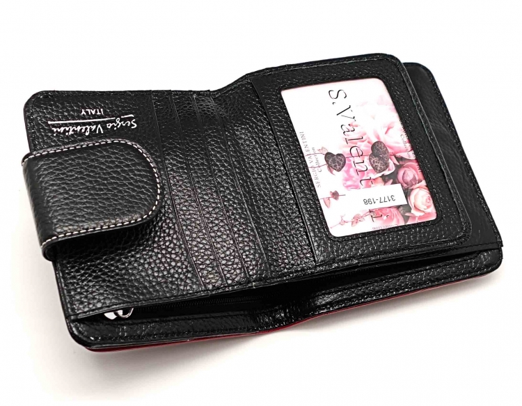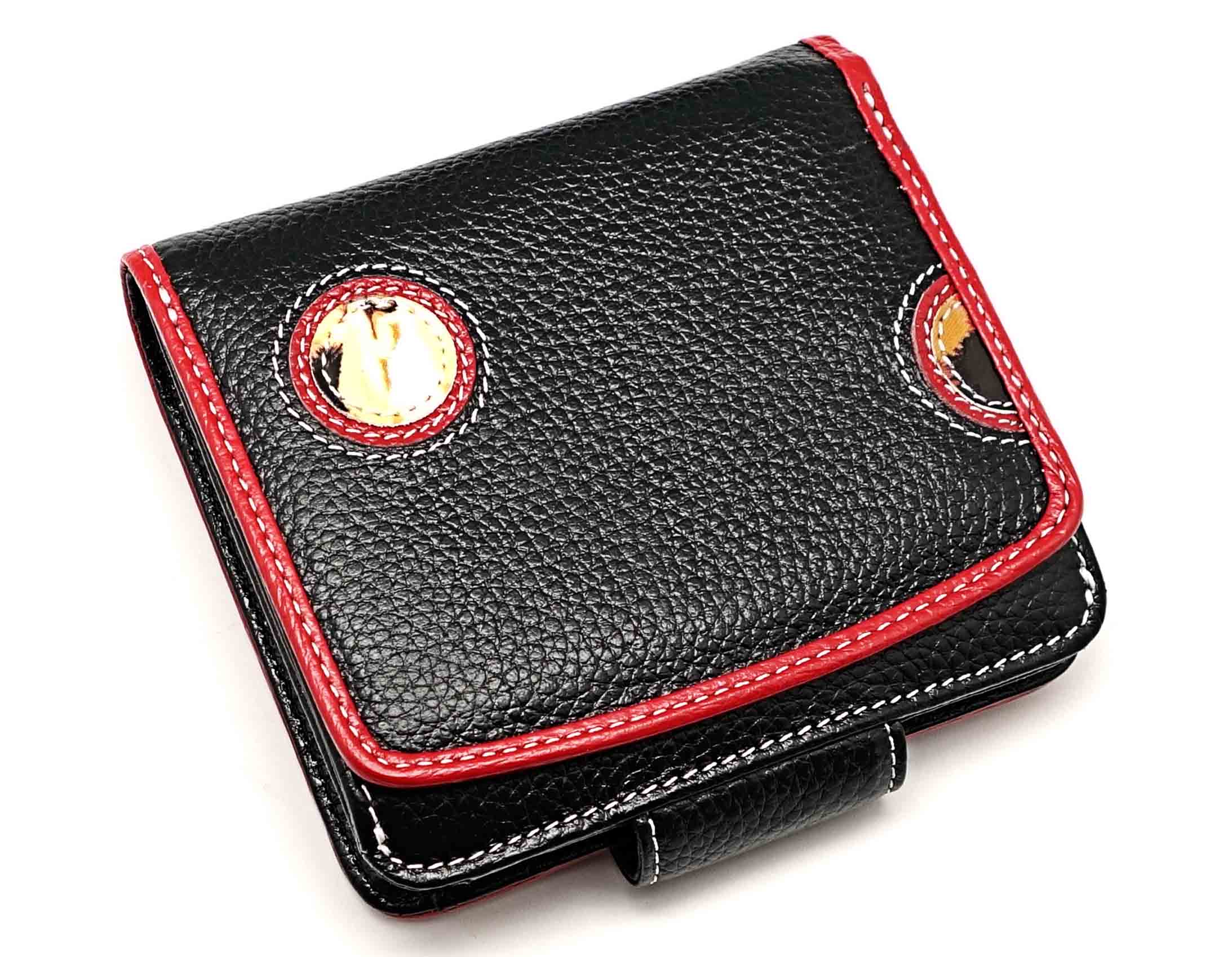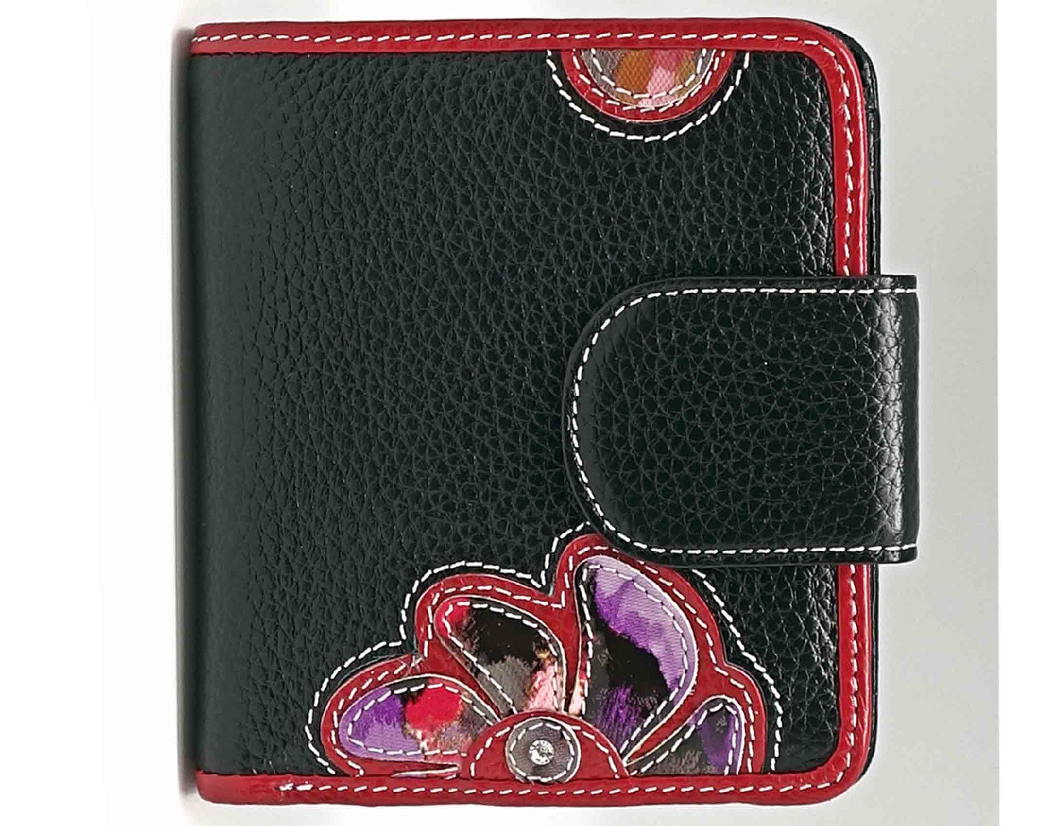Ограниченная серия аксессуаров, изготовленных из мягкой натуральной кожи и декорированных аппликацией. При производстве этого портмоне использована значительная доля ручного труда. Размер 10,5 х 11 х 3 см.. Закрывается на хлястик с кнопкой. Внутри три отделения для купюр (два открытых и одно на молнии), 9 кармашков для пластиковых карт, 3 боковых кармана, прозрачное окошко для фотографии. Снаружи- карман для монет на кнопке. Упаковано в фирменную коробку.