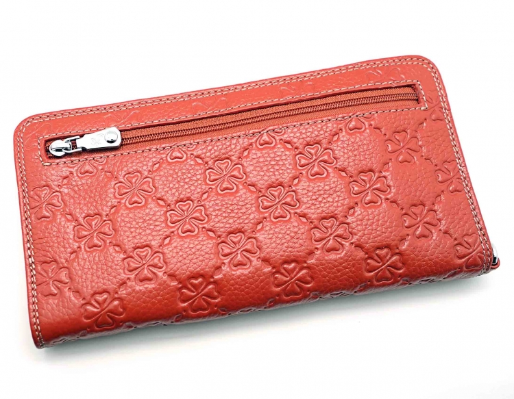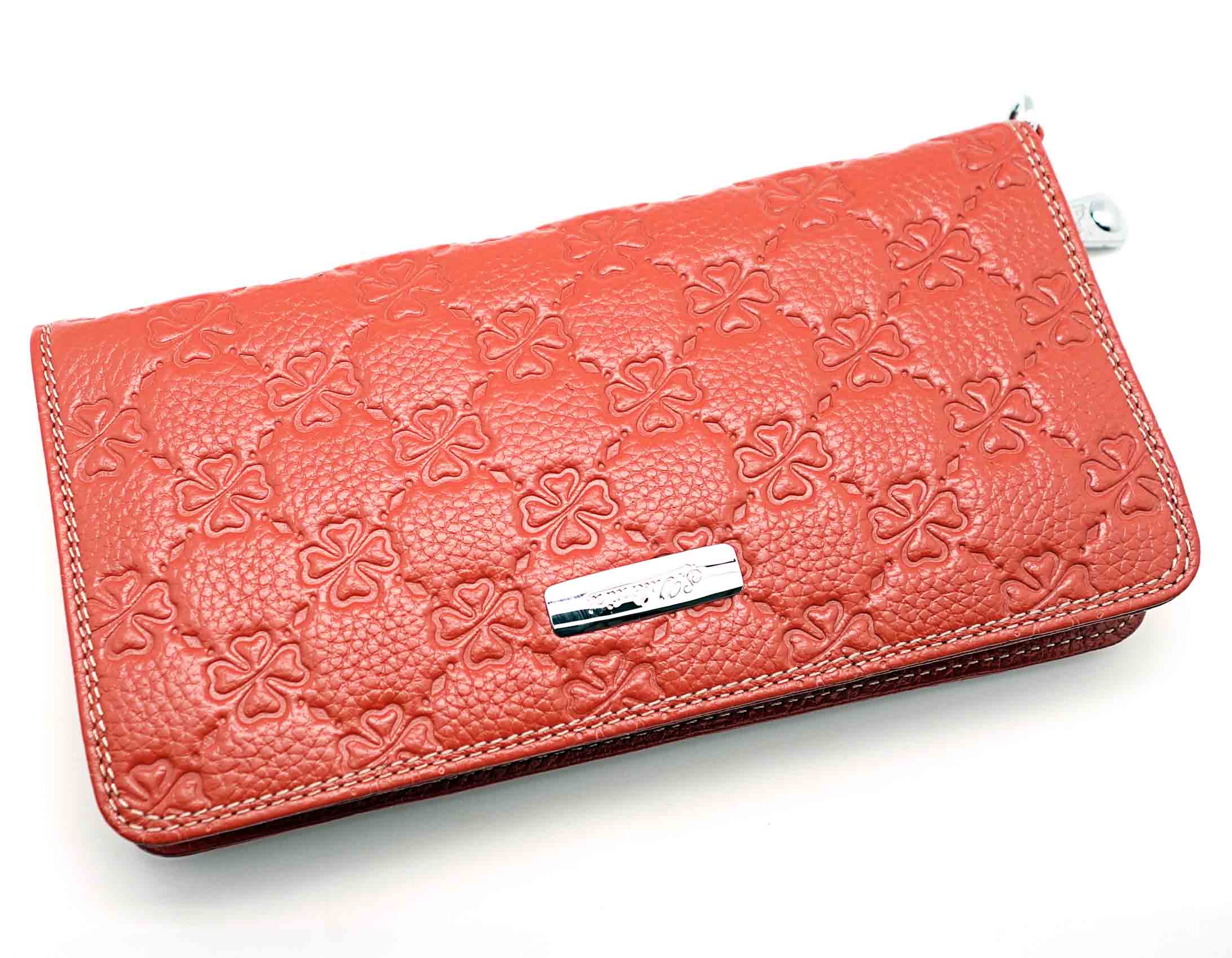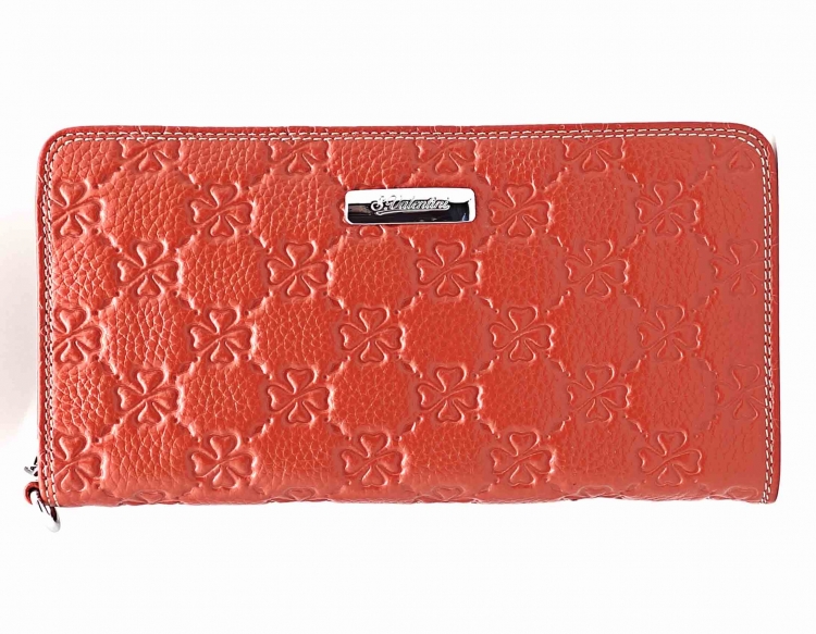 Размер 20х10,5 см. Закрывается на молнию. Внутри: два отделения и два кармана для купюр, один карман на молнии, 12 кармашков для пластиковых карт. Снаружи, на оборотной стороне: отделение для монет на молнии. К портмоне пристёгивается кожаный ремешок.