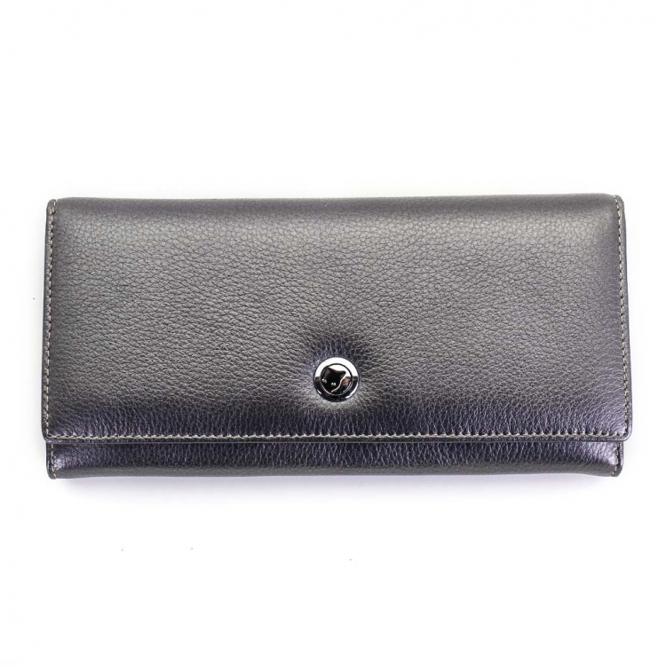 Размер 18,5 х 9.5 см. Закрывается на кнопку. Внутри - три отделения и один карман для купюр, два отделения для монет под рамочным замком, карман на молнии, 12 кармашков для пластиковых карт, продольный карман на створке, прозрачное окошко для фотографии. Снаружи, на тыльной стороне, карман на молнии.