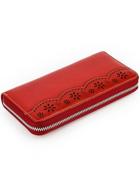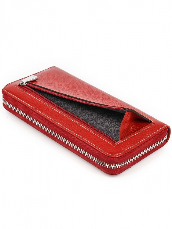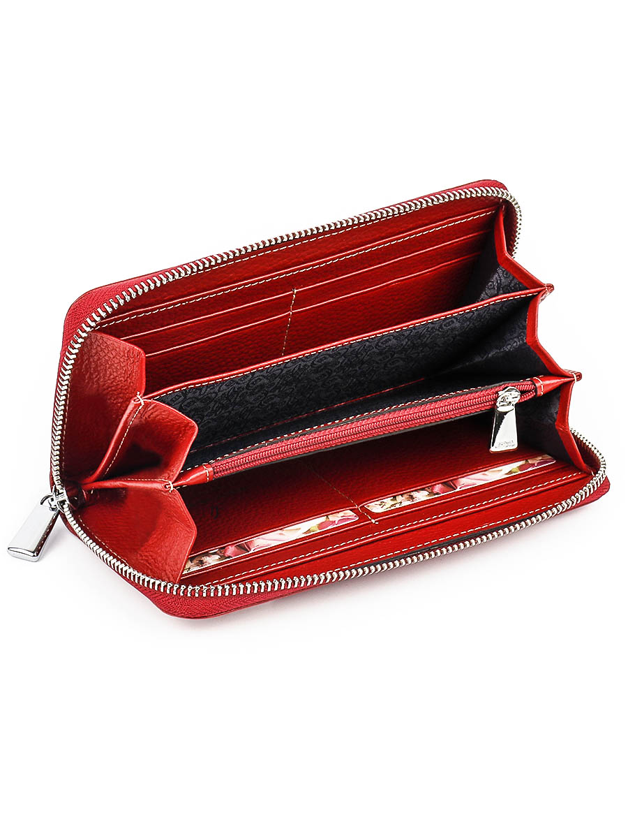 Размер 19 х 9,5 см. Закрывается на молнию. Внутри - три отделения и два кармана для купюр, отделение для монет на молнии, 9 кармашков для пластиковых карт.