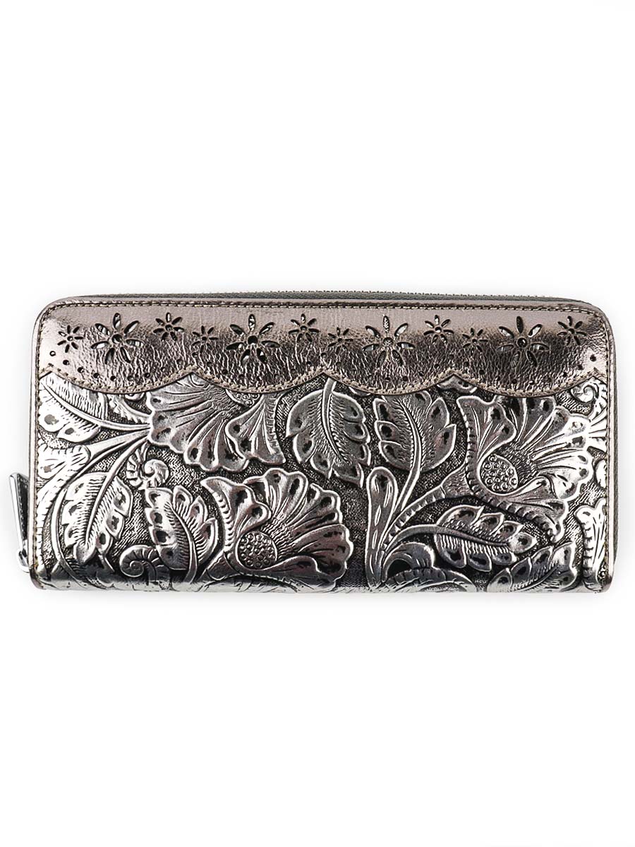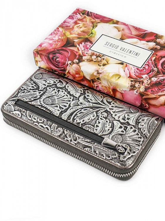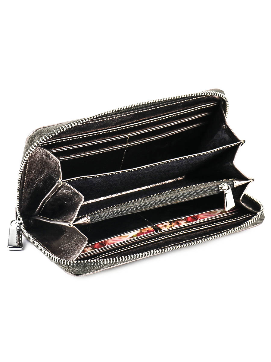 Размер 19 х 9,5 см. Закрывается на молнию. Внутри - три отделения и два кармана для купюр, отделение для монет на молнии, 9 кармашков для пластиковых карт.