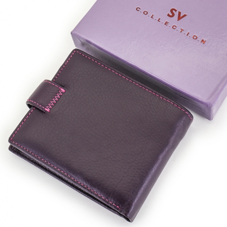 Размер 11,5 х 9,5 х 2,5 см. Закрывается на хлястик с кнопкой. Внутри два отделения для купюр и одно для бумаг на молнии, три кармашка для пластиковых карт, два боковых кармана и отделение для монет, закрывающееся на клапан с кнопкой. Упаковано в фирменную коробку.