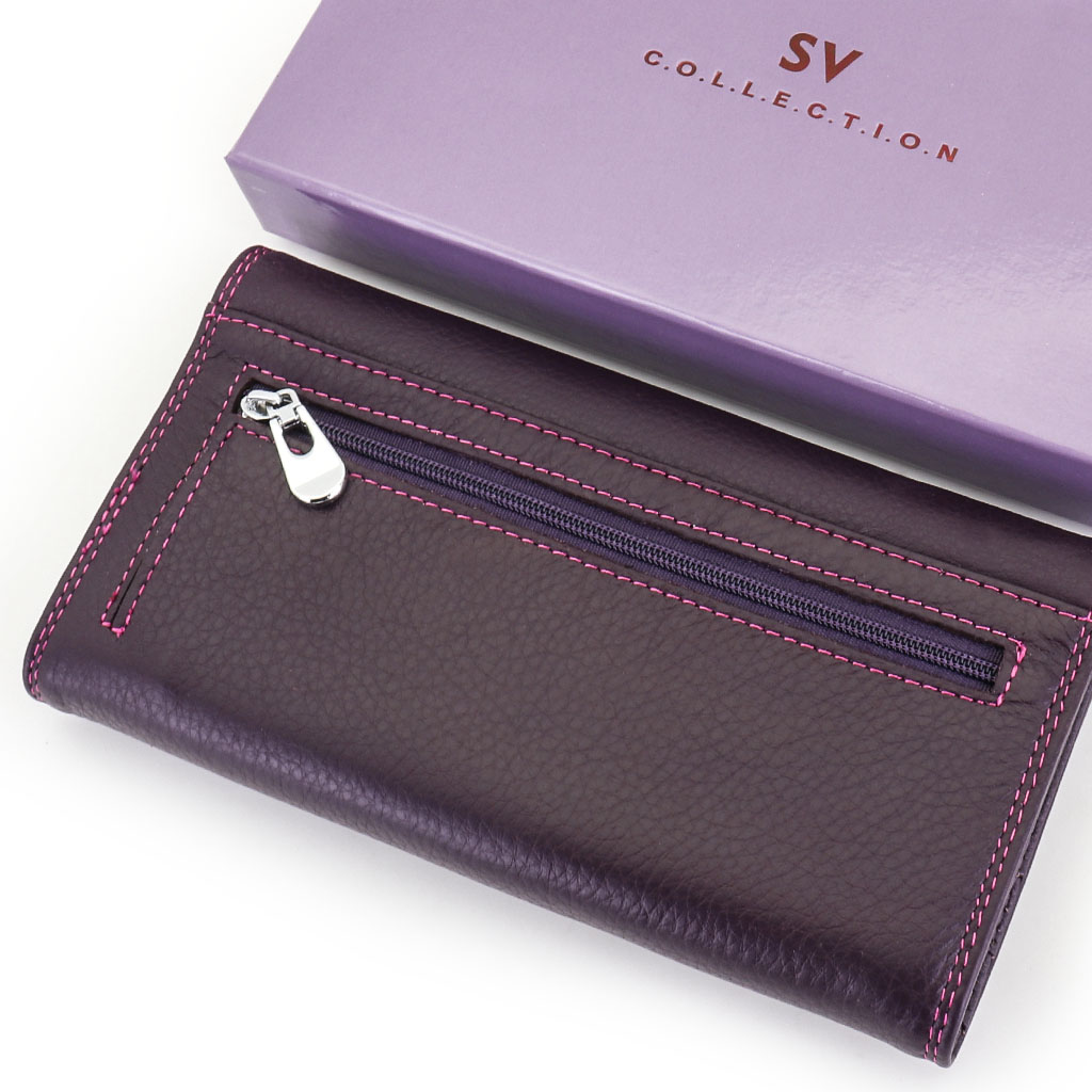 Размер 18,5 х 10 х 2,5 см. Закрывается на кнопку. Внутри - два отделения для купюр и карман на молнии, восемь кармашков для пластиковых карт, прозрачное окошко для фотографии из галантерейной сетки и продольный карман на створке. Снаружи, на тыльной стороне, карман на молнии. Упаковано в фирменную коробку.