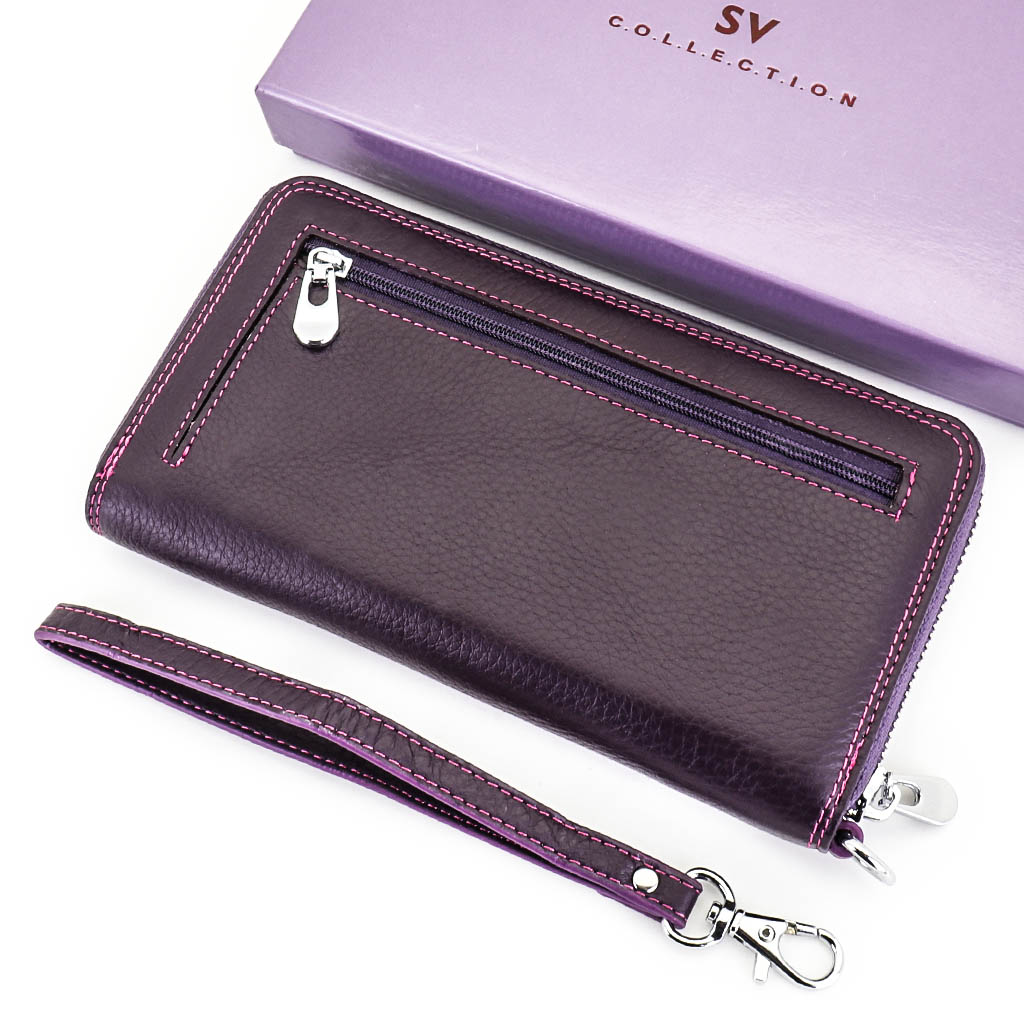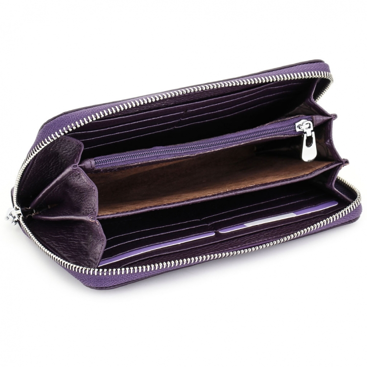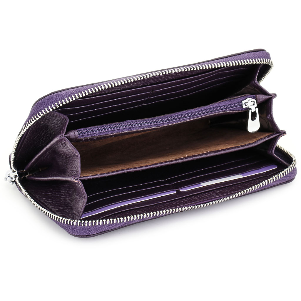 Размер 19 х 10,5 х 2 см. Закрывается на молнию. Внутри - три отделения и два кармана для купюр, карман на молнии и восемь кармашков для пластиковых карт. Снаружи, на тыльной стороне, открытый карман. В комплекте съёмный ремешок на запястье. Упаковано в фирменную коробку.