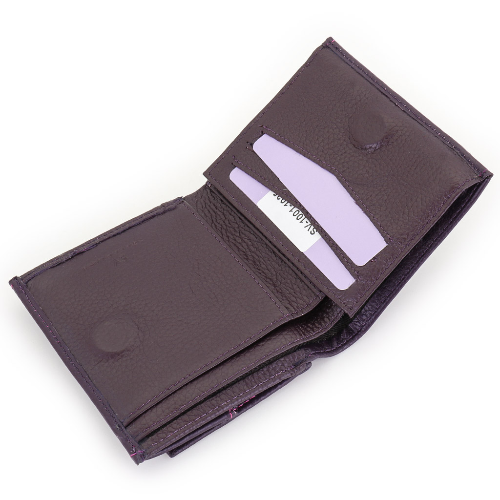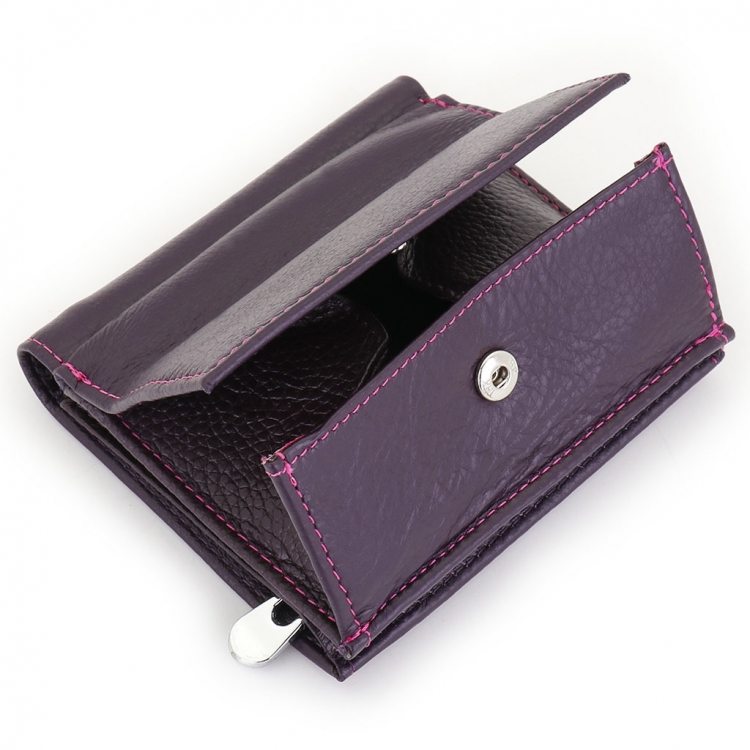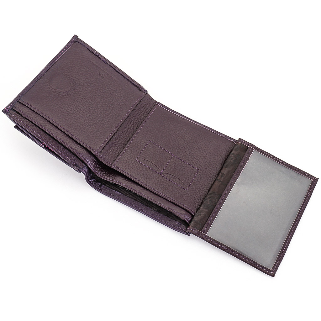 Размер 10 х 10,5 х 2,5 см. Закрывается магнитной кнопкой. Внутри - три отделения для купюр (одно из которых на молнии), три отсека для пластиковых карт, два боковых кармана, прозрачное окошко для фотографии и два кармашка для СИМ карт. На тыльной стороне расположен карман для монет на кнопке. Упаковано в фирменную коробку.