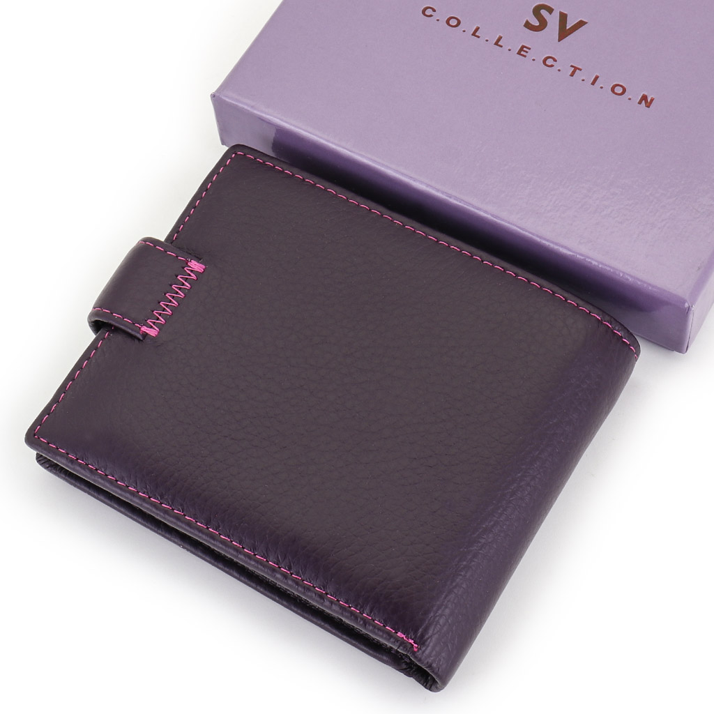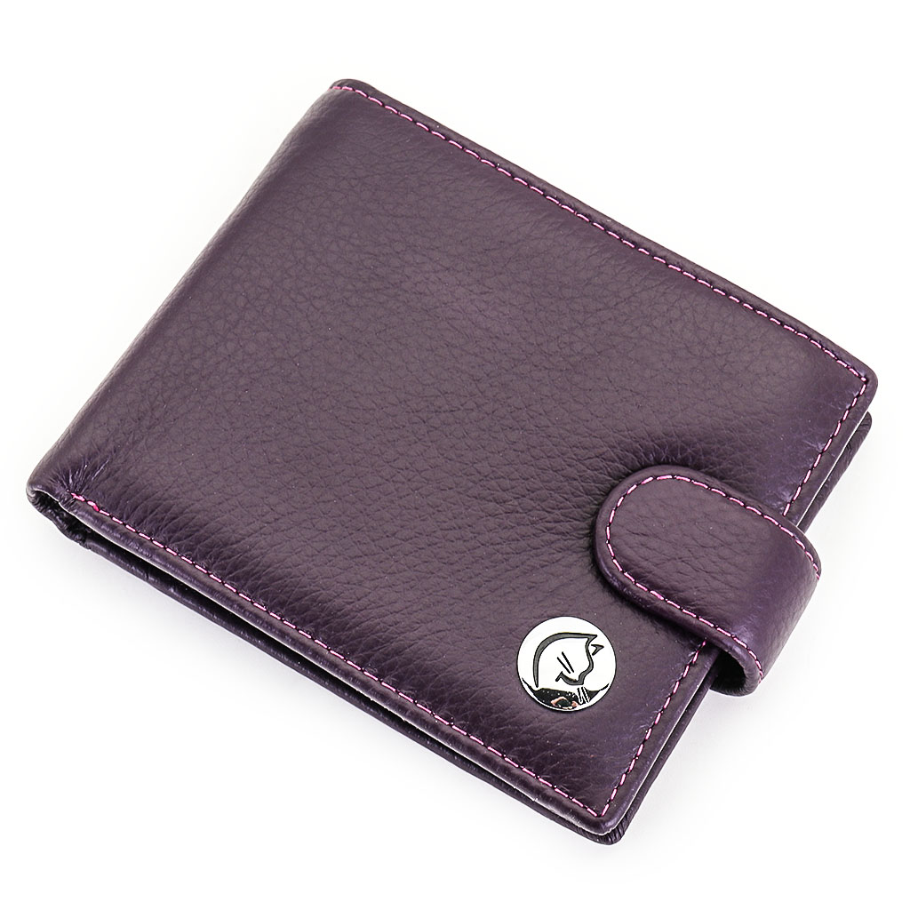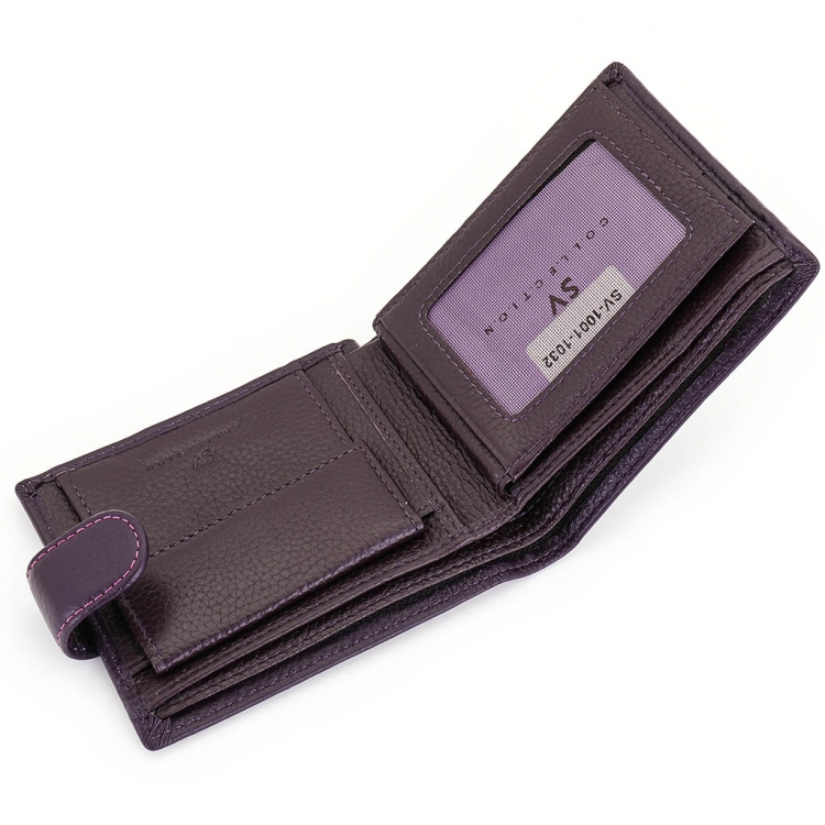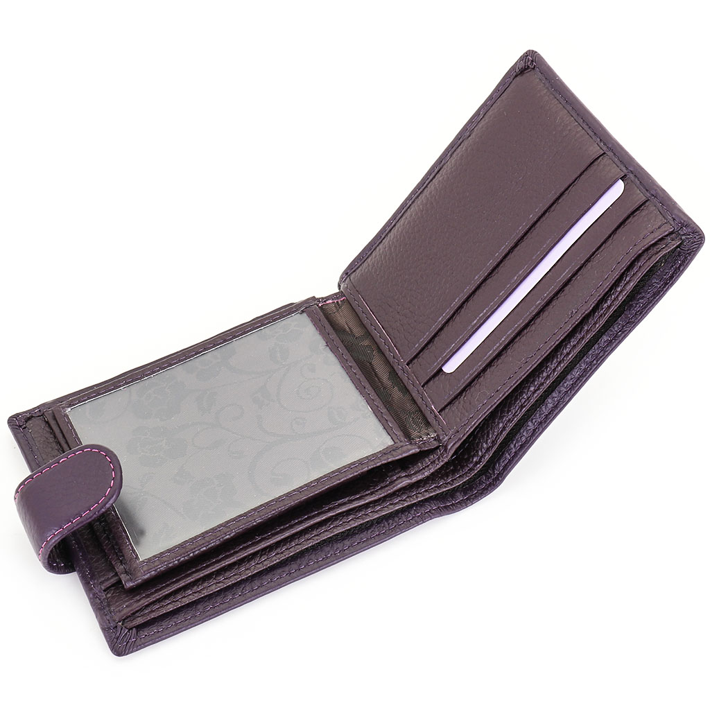 Размер 11,5 х 9,5 х 2,5 см. Закрывается на хлястик с кнопкой. Внутри три отделения для купюр (одно на молнии), три кармашка для пластиковых карт, два прозрачных окошка на клапане, два боковых кармана и отделение для монет, закрывающееся на клапан с кнопкой. Упаковано в фирменную коробку.