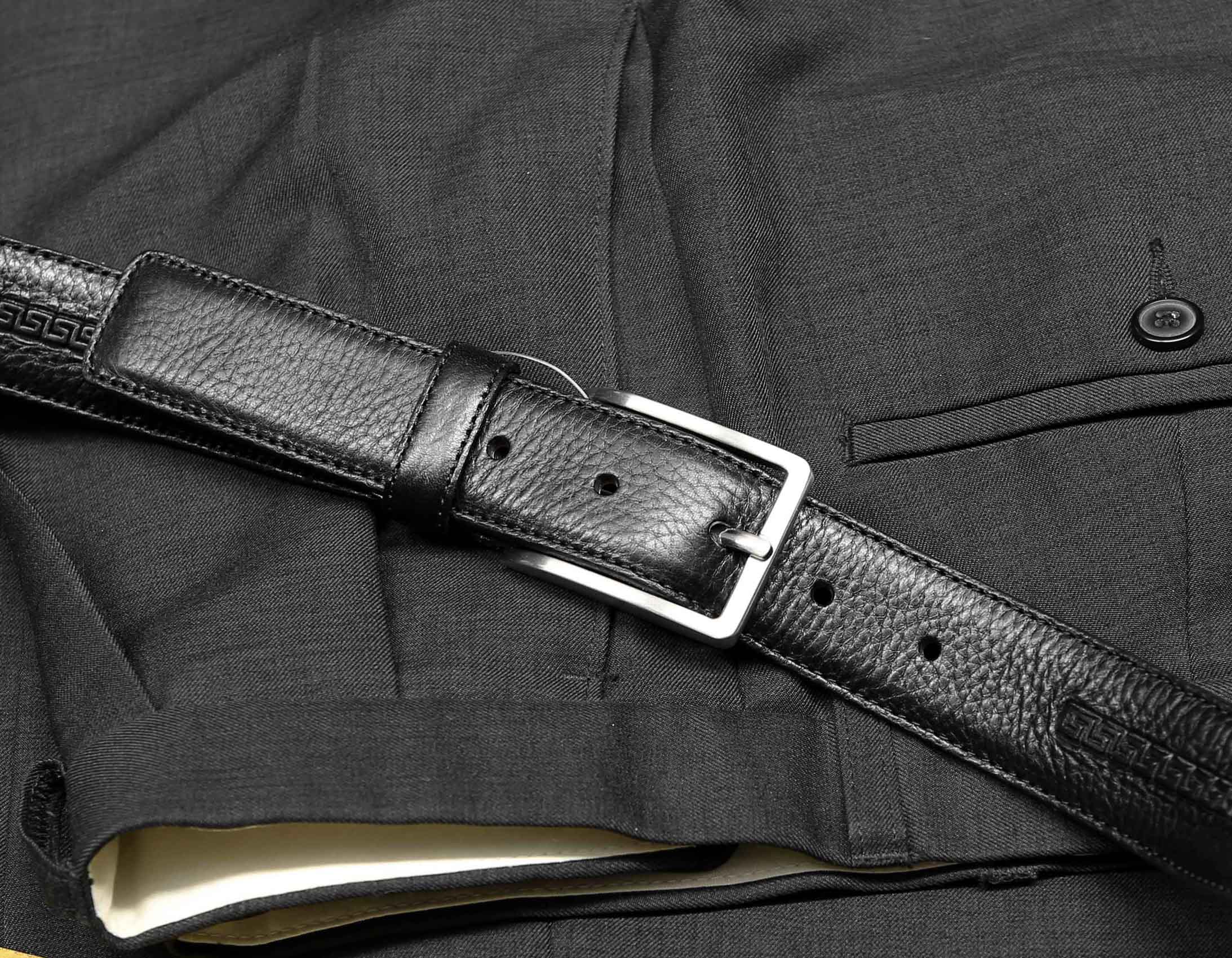 Классичесий брючный ремень из натуральной кожи итальянского производства. Ширина полотна 34 мм., длина 115 см.