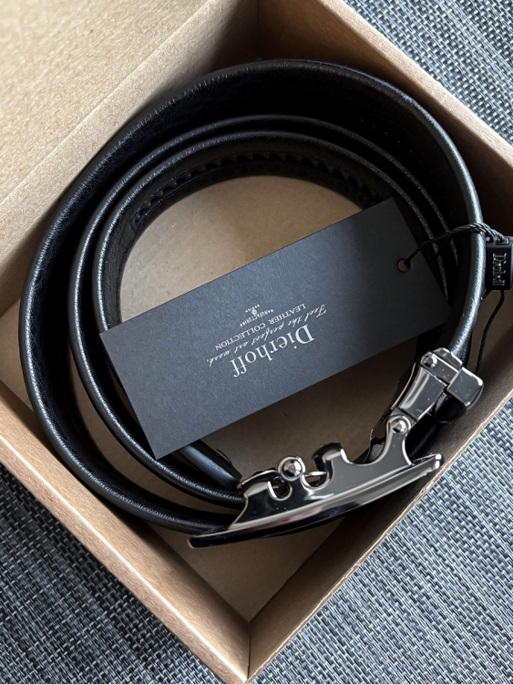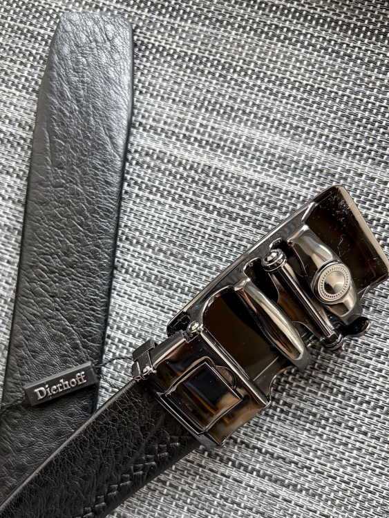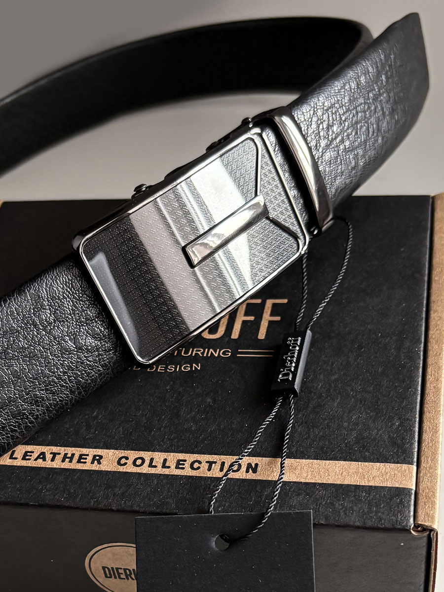 Мужской брючный ремень из натуральной кожи. Пряжка автоматическая, съемная. Ремень можно легко укоротить. Ширина полотна 35 мм, длина 115 см. Упакован в индивидуальную коробку.