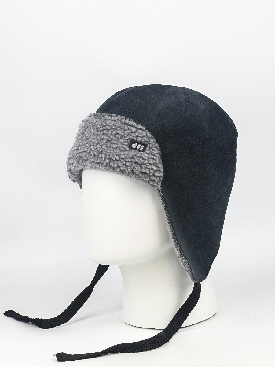 Шапка, флис + искусственный мех+ПТФЭ мембрана, ДФФ, цвет: Черный, Серый