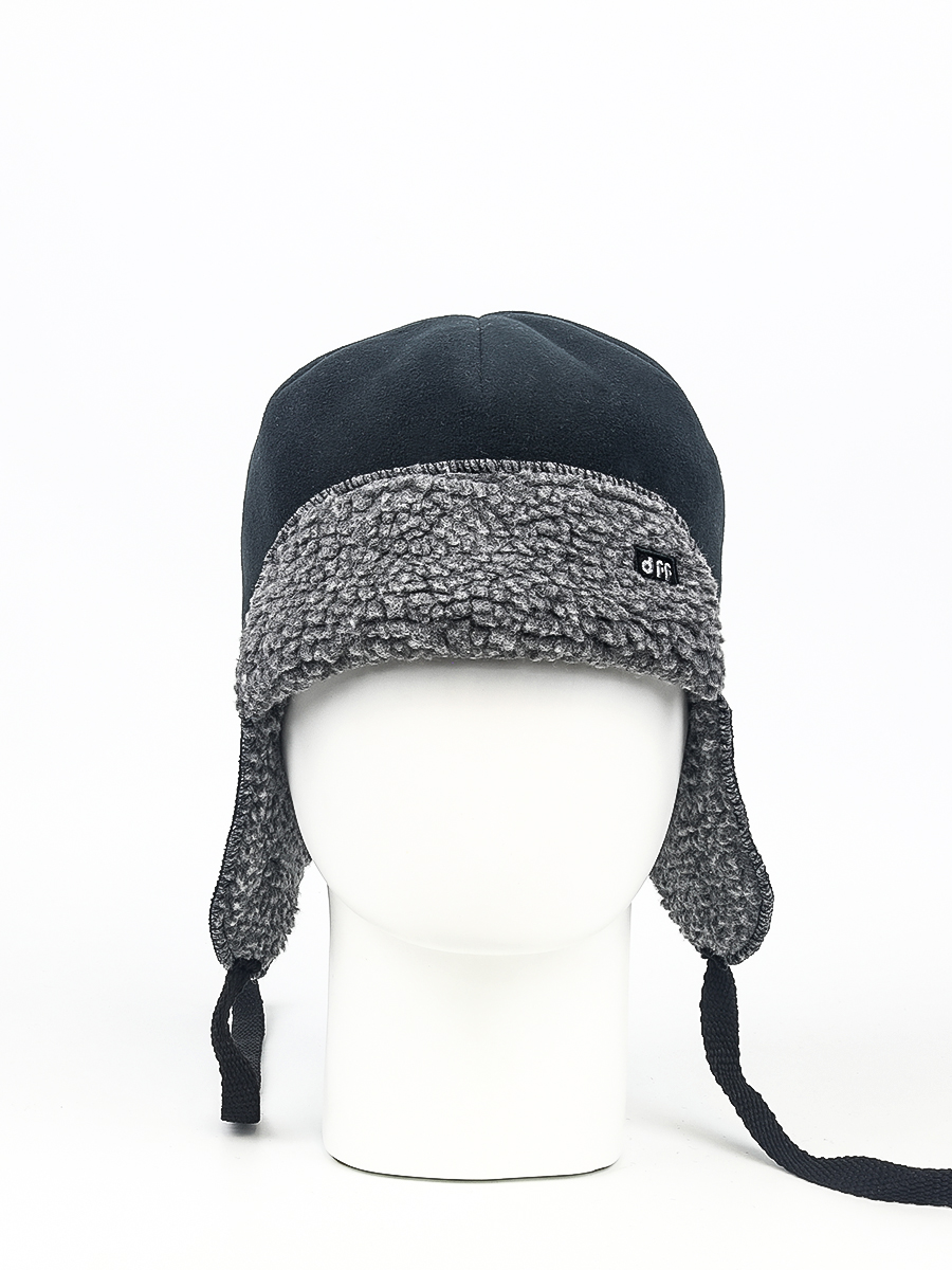 Шапка, флис + искусственный мех+ПТФЭ мембрана, ДФФ, цвет: Черный, Серый