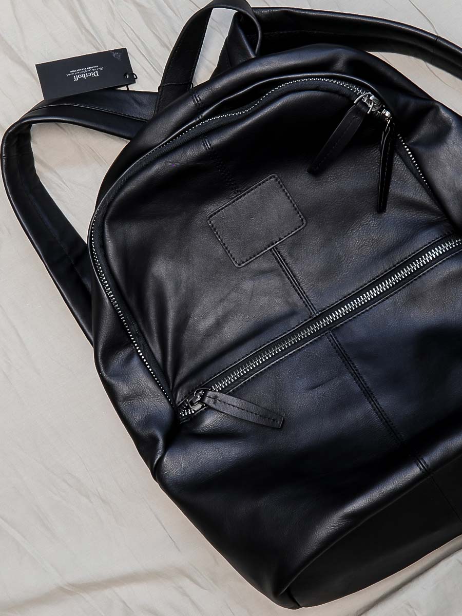 Размер 29 х 39 х 14 см. Закрывается на металлическую молнию. Спереди расположен вместительный карман на молнии. Внутри просторное отделение, два открытых кармана и один на молнии. На обратной стороне вертикальный карман на молнии. Длина лямок регулируется. Имеет удобную ручку для ношения в руке.
