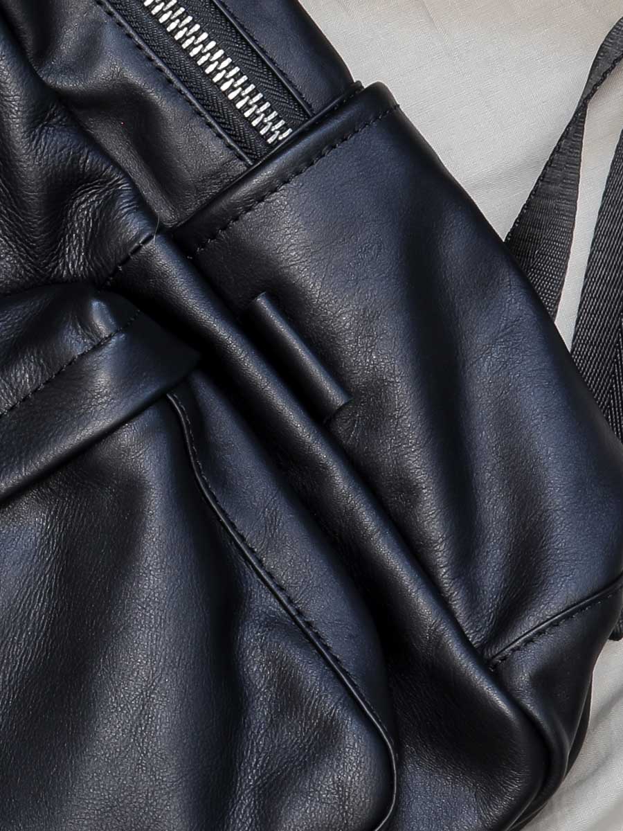 Размер 30 х 40 х 14 см. Закрывается на металлическую молнию. Спереди карман на молнии, два открытых кармана расположены с боковых сторон. Внутри вместительное отделение, большой открытый карман и карман на молнии. На обратной стороне вертикальный карман на молнии. Длина лямок регулируется. Имеет удобную ручку для ношения в руке.