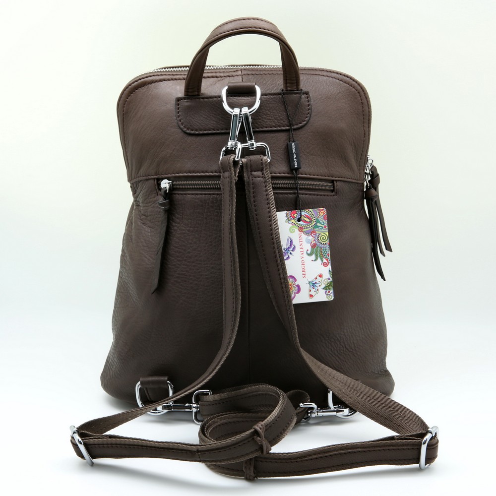 Размер 29 х 34 х 12 см. Закрывается на металлическую молнию. На передней стороне карман на молнии. Внутри два отделения и три кармана- открытый и два на молнии. На обратной стороне карман на молнии. Длина съёмных лямок регулируется. Имеет удобную ручку для ношения сумки в руке.